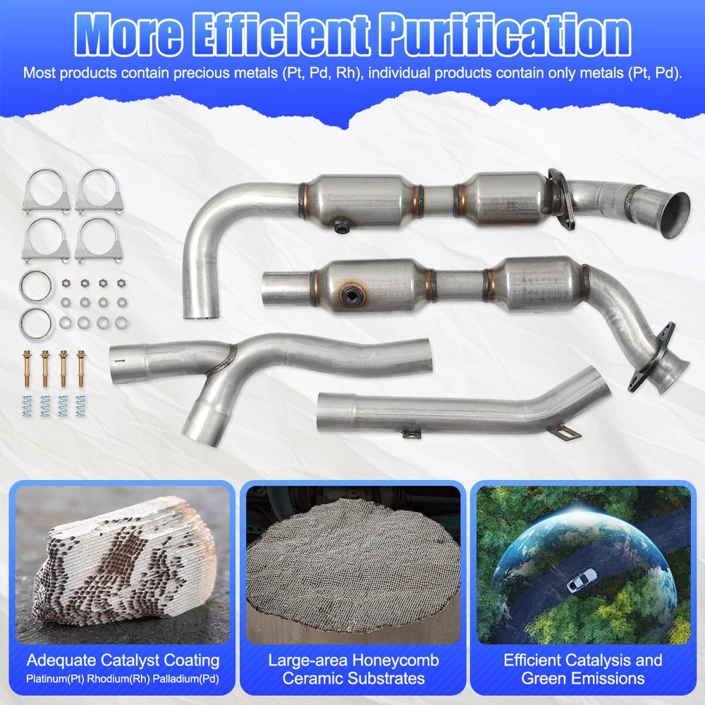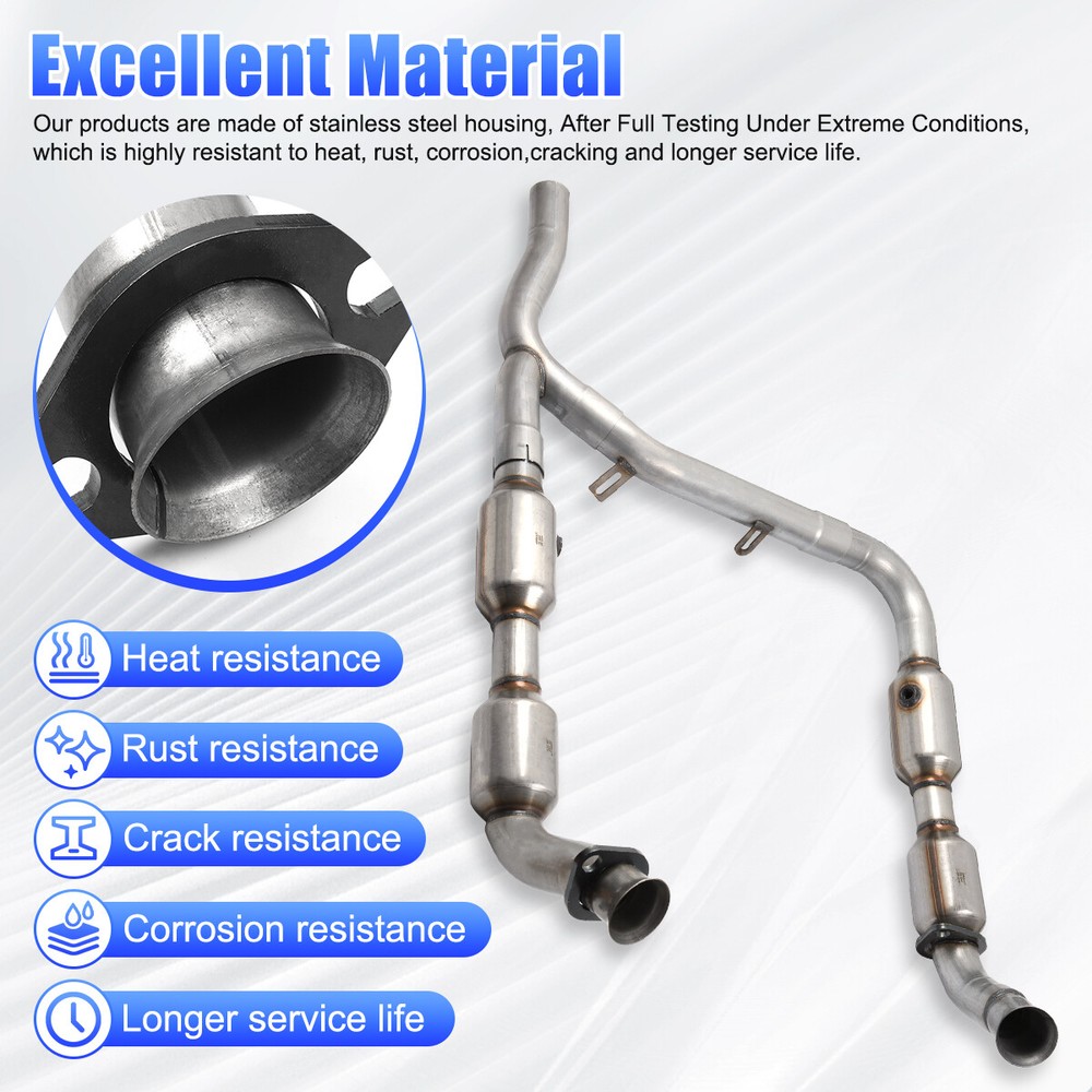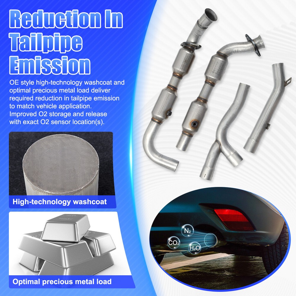 You may also like OEM Catalytic Converter For 04-10 Dodge Dakota 06-09 Mitsubishi Raider 3.7L 4.7L 99.99 USD Free shipping OEM Catalytic Converter For 14-18 Chevrolet Silverado GMC Sierra 1500 4.3L 5.3L* 139.99 USD Free shipping OEM Catalytic Converter For 2006 2007 2008-2012 Lexus IS250 2.5L AWD 16633 16635 109.99 USD Free shipping OEM Catalytic Converter EPA OBD-II For 14-18 Chevrolet Silverado 1500 5.3L 4.3L 139.99 USD Free shipping 1 Set of Catalytic Converter For 2007-2011 Toyota Camry / Solara 2.4L Flex Pipe 69.88 USD Free shipping Catalytic Converter Complete For 2015-17 Ford Expedition /Lincoln Navigator 3.5L 349.99 USD Free shipping OEM Catalytic Converter For 2009-2013 Toyota Corolla /09-2011 Toyota Matrix 1.8L 97.99 USD Free shipping OEM Diesel Particulate Filter (DPF) For Mercedes ML320 ML350 GL320 GL350 BlueTEC 199.99 USD Free shipping DPF Diesel Particulate Filter For 10-11 Mercedes ML320 ML350 GL320 GL350 BlueTEC 199.99 USD Free shipping OEM Left & Right Catalytic Converter For 2011-2014 Ford F-150 V6 3.5L EPA OBDII 143.99 USD Free shipping OEM Diesel Particulate Filter DPF For 08-10 Ford F250 350 Diesel 6.4L 9C3Z5H221B 429.99 USD Free shipping OEM All 3 manifold Catalytic Converter For 08-2012 Honda Accord 3.5L EPA &OBD-II 139.99 USD Free shipping OEM Front & Rear Catalytic Converter SET For 2010-2013 Ford Transit Connect 2.0L 159.99 USD Free shipping OEM Catalytic Converter For 2015-2018 FORD F-150 3.5L Turbo LH & RH 52605 70404 149.99 USD Free shipping OEM Catalytic Converter Set For 14-20 Infiniti QX60 V6 3.5L 641532 641531 643144 198.99 USD Free shipping OEM Catalytic Converter SET For 06-08 Dodge Ram 1500 V6 3.7L V8 4.7L 55366588AD 113.99 USD Free shipping Product Description OEM LH & RH Catalytic Converter For 2001-2003 Ford F150 4.2L RWD 54407 53412 NEW 1 set Left & Right Catalytic Converter For 2001-2003 Ford F-150 4.2L Only RWD 54407 53412 Features: 1.Excellent Material.Our products are made of stainless steel housing, After Full Testing Under Extreme Conditions, which is highly resistant to heat, rust, corrosion, cracking and longer service life. 2.Our catalytic converters are direct replacements, Compliant with standard OE specifications, all mounting holes are securely and accurately fastened with the included gasket and hardware. 3.OE style high - technology washcoat and optimal precious metal load deliver required reduction in tailpipe emission to match vehicle application. Improved O2 storage and release with exact O2 sensor location(s). 4.Direct - Fit Design - Bolt - on replacement solution with OE - style routings for easy installation that doesn't require fabrication or welding. 5.By using, it can help to improve exhaust gas velocity, save horsepower and torque. Great emissions control, high efficiency and work efficiently. Specifications: Converter Configuration: Direct Fit Body Material: Stainless Steel Color:Natural Body Shape: Round Substrate Material: Ceramic EPA OBD-II Approved. Restricted States: California, New York, Colorado & Maine Placement on Vehicle:Driver & Passenger Side Inlet Type:2 Bolt Loose Flange With Spherical Flare+Pipe Connection Inlet Inside Diameter:3 in+2.5 in Outlet Type:Pipe Connection+Pipe Connection Outlet Outside Diameter:2.5 in+2.5 in 5 years or 50,000 miles limited warranty. Part Numbers: 54407 53412 Fitment : For 2001-2003 Ford F-150 4.2L(Only RWD) For 2004 Ford F-150 HERITAGE 4.2L(Only RWD) Package Contents: 1x Catalytic Converter w/Installation Accessories Attention: ⭐EPA Approved. For Use with Federal Emissions Models Only. ⭐Not Legal for Sale in California, New York,Maine and Colorado. ⭐If Your Vehicle Is Registered in California , New York,Maine Or Colorado Do Not Purchase This Part. ⭐If Your Vehicle Meets California Requirements, but Is Not Registered in California or New York, This Converter Will Work on Your Vehicle Note: Converters don’t fail on their own. It is important to complete a full exhaust inspection and correct any other issues such as cracked manifolds and exhaust leaks prior to replacing the converter .This will ensure the root cause for the check engine light has been resolved for emissions code concerns and keep the engine running on all cylinders. STEP 1: Remove the cold air intake.Remove the engine cover. Reinstall the oil cap to avoid engine contamination.Remove the engine cover bracket to access the exhaust manifold.Remove the oxygen sensor.Remove the heat shield. STEP 2: Inspect the exhaust manifold for cracks before installing a new converter. If it is cracked, the manifold must be replaced or it will cause a non-warrantable converter failure. Remove and save the nuts from the intake flange. STEP 3: Remove the engine support bracket.Remove the catalytic converter.Line up the new catalytic converter.Loosely install one top nut to secure the catalytic converter. STEP 4: Make sure the engine bracket is attached to the new converter hanger and that the bolt is attached to the new converter hanger. Failure to use the bracket could lead to premature failure.Reinstall the downstream oxygen sensor. STEP 5: Complete the catalytic converter installation: 1.Tighten the converter inlet flange nuts and torque to the manufacturer’s specifications. 2.Reinstall hardware for the outlet flange. 3.Tighten the converter bolts and torque to manufacturer’s specifications. STEP 6: Reinstall the heat shield and oxygen sensor.Reinstall support bracket.Reinstall the engine cover and the cold air intake. Please Carefully Check Whether the OE Number And Picture are What You Need Before Buying. If You are Not Sure Whether It Fits, Please Write to us. If There are Any Problems, Communication by Letter Will be More Effective. No Instruction Included, professional installation is highly recommended. Payment Shipping Terms Returns Feedback Contact us We accept PayPal only. If buyer want to delay the payment because of financial problem, please contact me by the ebay message within 3 days Payment via PayPal (Pay