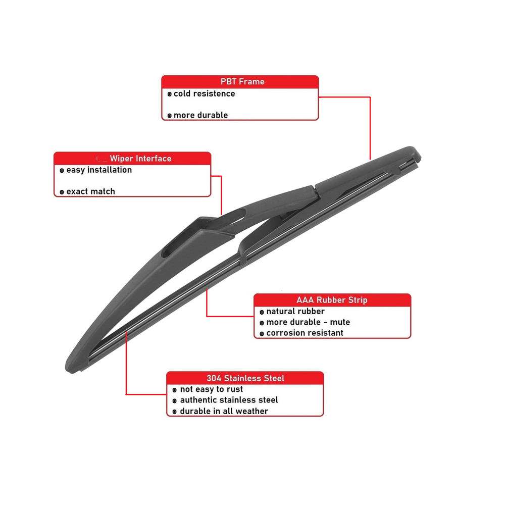 These wiper blades fit my Mini Cooper R56 perfectly and provide a super clear rear view in all weather conditions. The upgraded spring pressure ensures smooth, streak-free wiping, and the ABS/rubber construction feels durable. Installation was quick and hassle-free—no more struggling with poor visibility during rain! Highly recommend for a reliable OEM replacement.