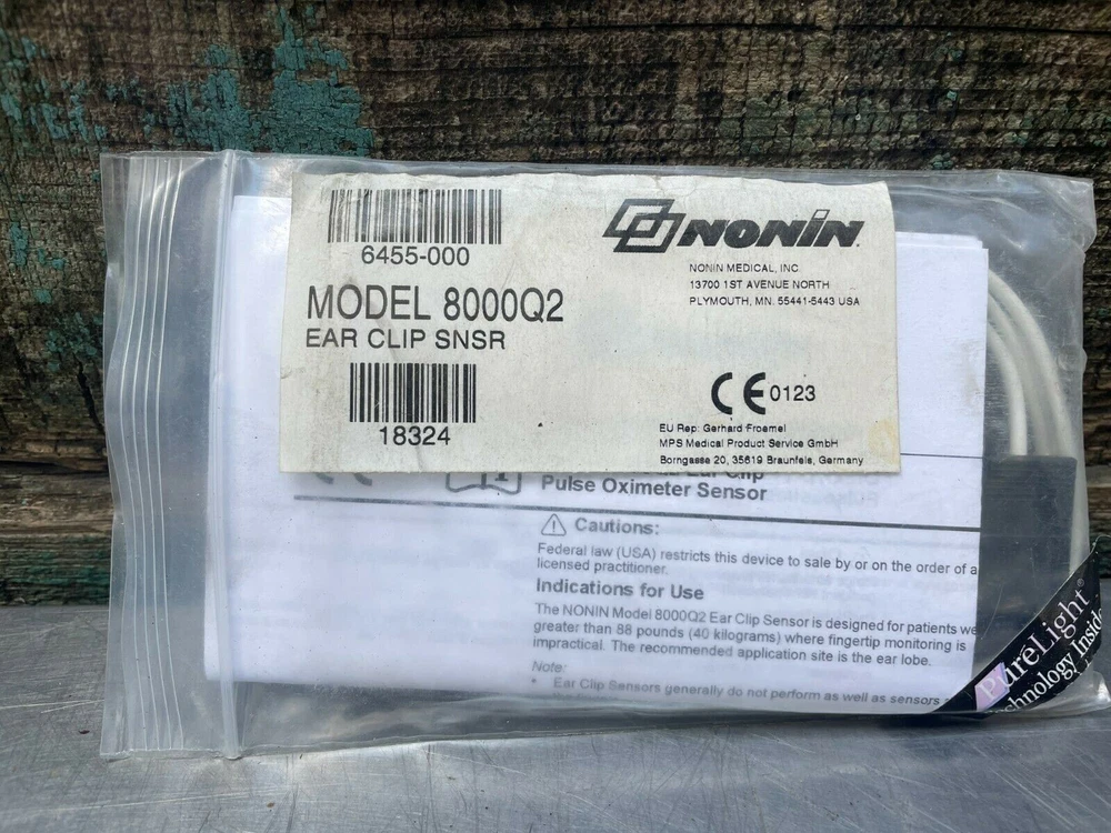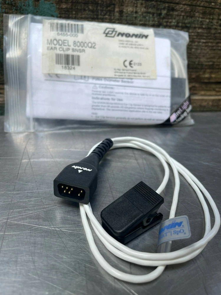 OEM Nonin Reusable Ear Clip Pulse Oximetry Sensor SpO2 7 PIN 8000Q2 New old stock. Shelf wear. Compatible with: PalmSAT® 2500/2500A 8500 Series Model 7500* Avant® 2120 LifeSense® PulseSense™ E-bay Required Medical Disclaimer: By purchasing, buyer is stating they are not prohibited from purchase, ownership, or possession of item. Buyer attests they are a physician, licensed healthcare practitioner, or any other practitioner licensed by the law of the State in which the practitioner practices to use or order the use of the device. "The sale of this item may be subject to regulation by the U.S. Food and Drug Administration and state and local regulatory agencies. If so, do not bid on this item unless you are an authorized purchaser. If the item is subject to FDA regulation, I will verify your status as an authorized purchaser of this item before shipping of the item." Kilo Eleven LLC New Orleans, LA 800 816 9858 Listing and template services provided by inkFrog