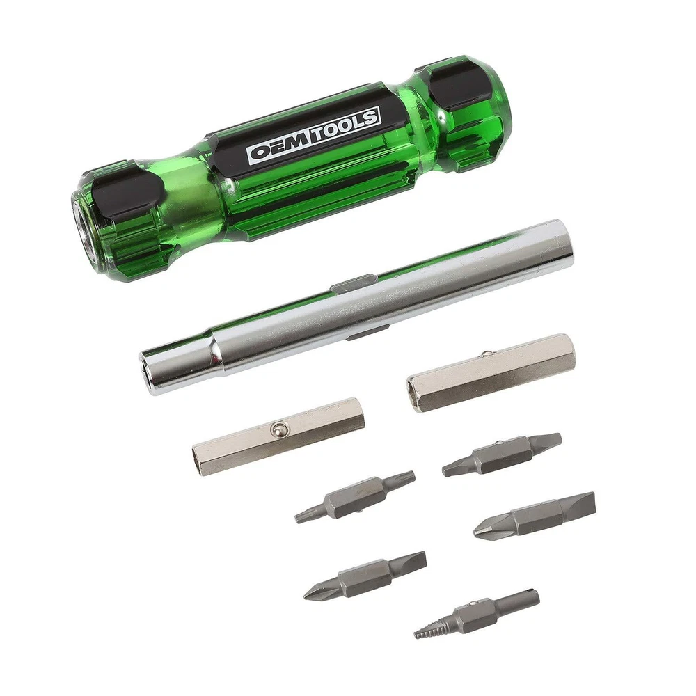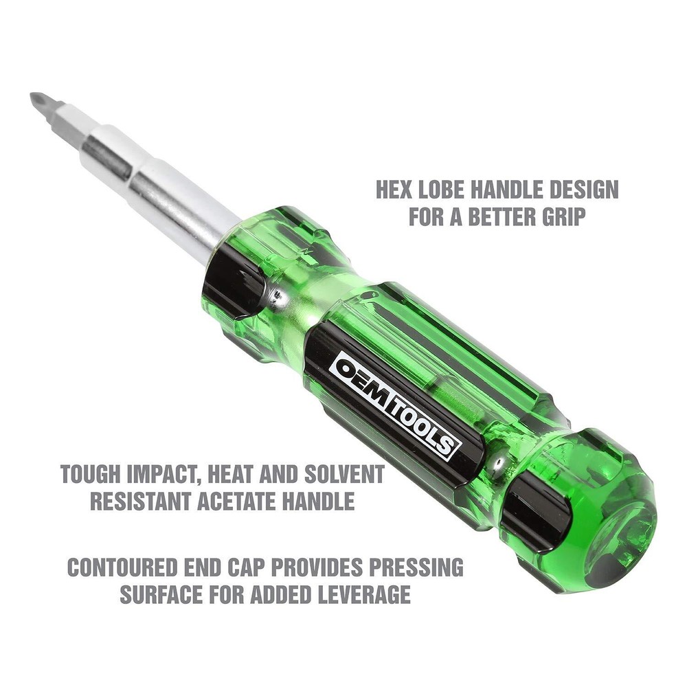OEMTOOLS 22588 13-in-1 Multi Screwdriver and Nut Driver, Schrader Valve Tool, Impact-Resistant Multi Bit Screw Driver, Versatile Multitool Screwdriver The OEMTOOLS 22588 13-in-1 Multi-Bit Screwdriver, Nut Driver, and Schrader Valve Tool is designed to meet the diverse needs of automotive professionals. This versatile multi bit screwdriver combines 13 tools in one, including slotted, Phillips, square, and Torx bits, making it a must-have for various fastening tasks. The interchangeable shaft allows you to switch between 1/4", 5/16", and 3/8" nut driver sizes, offering adaptability in every situation. The handle is crafted from impact- and solvent-resistant acetate, ensuring durability even in harsh conditions. The blast-finished bits provide a secure grip, reducing cam-out and ensuring precise operation. The included Schrader valve bit adds functionality, making tire maintenance quick and efficient. Whether you're handling general maintenance or specific automotive repairs, this all in one screwdriver is built to perform. Compact and easy to use, it’s the perfect addition to any toolbox, offering the reliability and versatility you need for any job. Impact-Resistant Handle: The durable acetate handle of this multi-bit screwdriver stands up to heavy use, offering impact and solvent resistance, ensuring longevity and reliability on tough automotive jobs. Interchangeable Nut Driver: Quickly switch between 1/4", 5/16", and 3/8" nut driver sizes with the convertible shaft, making this combination screwdriver an essential tool for diverse automotive fastening tasks. Secure Bit Retention: The blast finish on each bit provides a secure grip, minimizing cam-out and ensuring precision in various applications, from simple repairs to intricate automotive work. Schrader Valve Tool: Includes a specialized Schrader valve core removal and insertion bit, allowing for quick and efficient tire maintenance, adding versatility to this multi tip screwdriver. Versatile Bit Selection: Multibit screwdriver equipped with slotted, Phillips, square, and Torx bits, this 13-in-1 driver tool handles a wide range of tasks, from general maintenance to specific automotive applications. Shipping from the USA All of our products are shipped from the USA, ensuring quick delivery to your destination. Payment We offer the following payment methods: PayPal, credit card, bank transfer, and eBay's secure payment system. Free Shipping & Free Returns Shipping within the USA is FREE. Additionally, any return is absolutely free for you. Risk-Free Purchase You have the option to return an item within 30 days without any justification. We cover the return shipping costs! Fast Shipping We ship immediately upon receipt of payment. Generally, the package is delivered within 2-3 days in the USA. If it takes longer, we will contact you. Quality and Costs Made in Europe, USA, China No customs fees or additional charges Total satisfaction guarantee Invoice with declared VAT available upon request in .pdf format Feedback Your feedback is very important to us. After you pay for your purchase, you will automatically receive positive feedback from us.