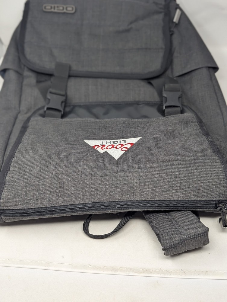 OHIO Coors Light Backpack Laptop Bookbag Travel Hiking-Paded Multi- Pockets. Pre-owned but in Nice Used Condition. Padded Adjustable Straps; Double buckle closures; External pockets; Internal Padded laptop section; Embroidered Coors Light emblem. May have some surface marks from use and storage. Approximate Measurements: 18" tall x 11-1/2" wide x 5" deep. See pictures for details and conditions. Please message us with any questions. Ships with USPS Mail. Thanks for looking.