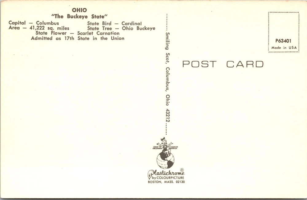 Country: USA Country/Region of Manufacture: Unknown Postage Condition: See Image Original/Licensed Reprint: Original Era: Chrome (1939-Present) Theme: Cities & Towns Subject: Cities & Towns City: Ohio Unit of Sale: Single Unit Type: Printed (Lithograph) Region: Ohio