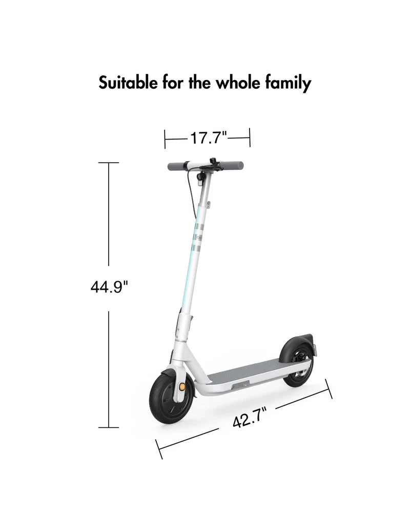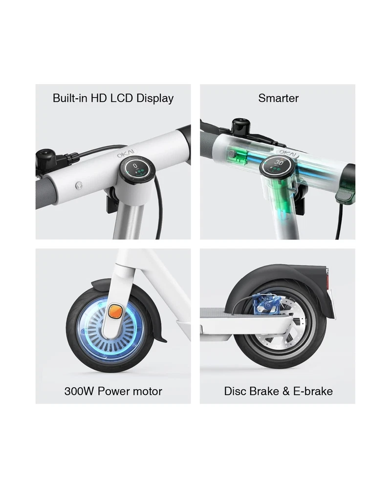 OKAI Neon Electric Kick Scooter - ES10/20/30 Models - 18.6-50 Miles Range & 15.5-20 MPH, Dual Brakes - Commuter Electric Scooter for Adults & Teens, UL2272 Certified Description Features: Introducing the NEON Lite: The perfect entry-level personal electric scooter for medium-distance commuting. It can reach 15.5 mph and travel up to 18.6 miles on a single charge. Its three speed modes offer versatility for any situation. Thanks to its 600W peak power motor, the NEON Lite can conquer hills with ease, making it a reliable and convenient mode of transportation for any commuter. Built to Last: To enhance the lifespan of electric scooters, we maintain high standards that guarantee both comfort and durability. Crafted from aircraft-grade aluminum, the frame is meticulously designed. Looking for a durable electric scooter for yourself? This is the place to start. Practical Yet Aesthetic: Different from the traditional style of electric scooters, Neon series is futuristic. It feels like the scooter has been carved from a single piece of metal, featuring elegant curves, clean lines. And it has an Ultra-Modern and Ultra-Clean Cockpit. High-resolution LCD display to keep you informed about the ride. Superior Safety: This adult electric scooter is equipped with 9" tubeless tires that help prevent flats and punctures, ensuring you can stay on the road without any unexpected interruptions. You can rely on excellent braking power with disc and electronic brakes, giving you peace of mind and complete control. APP Support: Connect your scooter to OKAI app and unlock a world of customization. Customize the ambient lights and dashboard interface to your liking, and personalize your ride mode for the ultimate experience. Features such as NFC and Bluetooth, smart detection and cruise control can be easily controlled in the app. We Take Care of Everything: Contact us if you are not satisfied with our product, you will receive 100% local customer support and quality assurance. If there are any quality problems, we promise to replace or refund you. Product Details: Brand: OKAI Color: White Age Range (Description): Adult Special Feature: Dual Braking System, Cruise Control, Wide Platform, Lockable, Foldable Weight Limit: 220 Pounds Product Dimensions: 44.9"L x 17.7"W x 42.7"H Number of Wheels: 2 Model Name: ES10 Wheel Material: Rubber Frame Material: Aluminum Brand: OKAI Color: White Age Range (Description): Adult Special Feature: Dual Braking System, Cruise Control, Wide Platform, Lockable, Foldable Weight Limit: 220 Pounds Product Dimensions: 44.9"L x 17.7"W x 42.7"H Number of Wheels: 2 Model Name: ES10 Wheel Material: Rubber Frame Material: Aluminum Item Weight: 33 Pounds Handlebar Type: Fixed Wheel Size: 9 Inches Wheel Type: Neon Lite: Tubeless Neon: Solid + Pneumatic Suspension Type: Rear Suspension Grip Type: Ergonomic Brake Style: Front:electric brake, Rea: disc brake Warranty Type: Limited Charging Time: 4.5 Hours Recommended Uses For Product: Urban commuting, short-distance travel Maximum Distance Range: 18.6 Miles Manufacturer: Zhejiang Okai Vehicle Co., Ltd. UPC: 810100340209 Item Package Dimensions L x W x H: 43.12 x 18.37 x 8.25 inches Package Weight: 18.58 Kilograms Item Dimensions LxWxH: 42.7 x 44.9 x 17.7 inches Brand Name: OKAI Warranty Description: Limited Warranty Material: Aluminum Suggested Users: unisex-adult Part Number: ES10 Style: ES10 Included Components: Electric Scooter Date First Available: February 27, 2023 Delivery We Do Not Ship Outside of the Continental US. Return Policy All items qualify for returns within 30 days of receipt. Buyer is responsible for return shipping on any item that is not damaged. Feedback We take our reputation seriously, we buy and sell online, so we understand the value of trust. If you are unsatisfied with your order, please contact us and we will work with you to resolve it to your satisfaction.