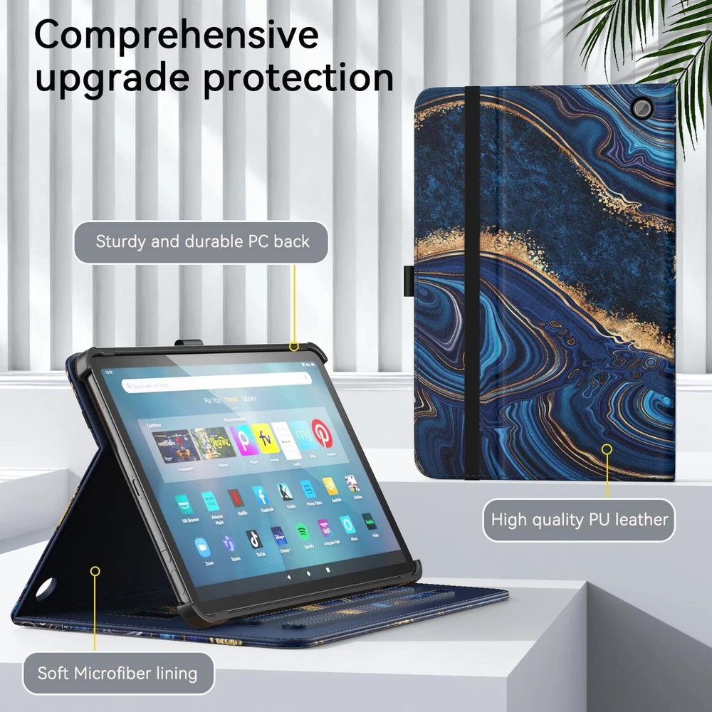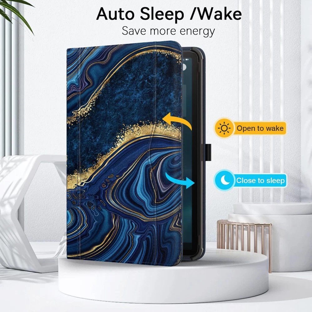 OKP forTablet 11 Case (13th Generation, 2023 Dark Blue Marble Product Details Package Dimensions: 10.59 x 6.77 x 1.02 inches Item Weight: 10.2 ounces Special features: Adjustable Stand Anti slip Auto Sleep/Wake Magnetic Closure Card Slots Scratch Resistant Form Factor: Case Color: Dark Blue Marble Manufacturer: OKP Brand: OKP Compatible Devices: Tablets Shell Type: Hybrid 【Full Protection】:The tablet case is made of high quality PU leather exterior + soft microfiber lining + hard PC back shell. Touching comfortable and providing comprehensive protection for 11 tablet, effectively preventing scratches, shocks, drops and impacts. 【Built-in wrist strap】 :The case with built-in wrist strap so you don't worry about your Kindle 11 tablet falling when reading. The interior hand strap gives you a comfortable single-handed use experience. Enjoy your reading time. 【Multiple Angles】 - Provides three angles for your tablet 11 to meet your viewing and typing needs, freeing your hands for other entertainment activities. 【Auto Wake/Sleep】 - Built-in magnetic strip, secures the case closure, easy to snap on and off. It auto wakes or sleep when you open/close it. Protects and extends battery life.