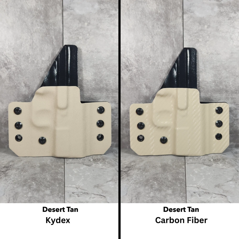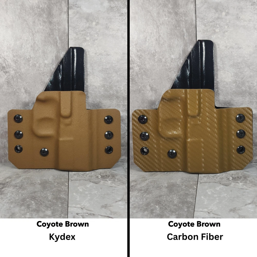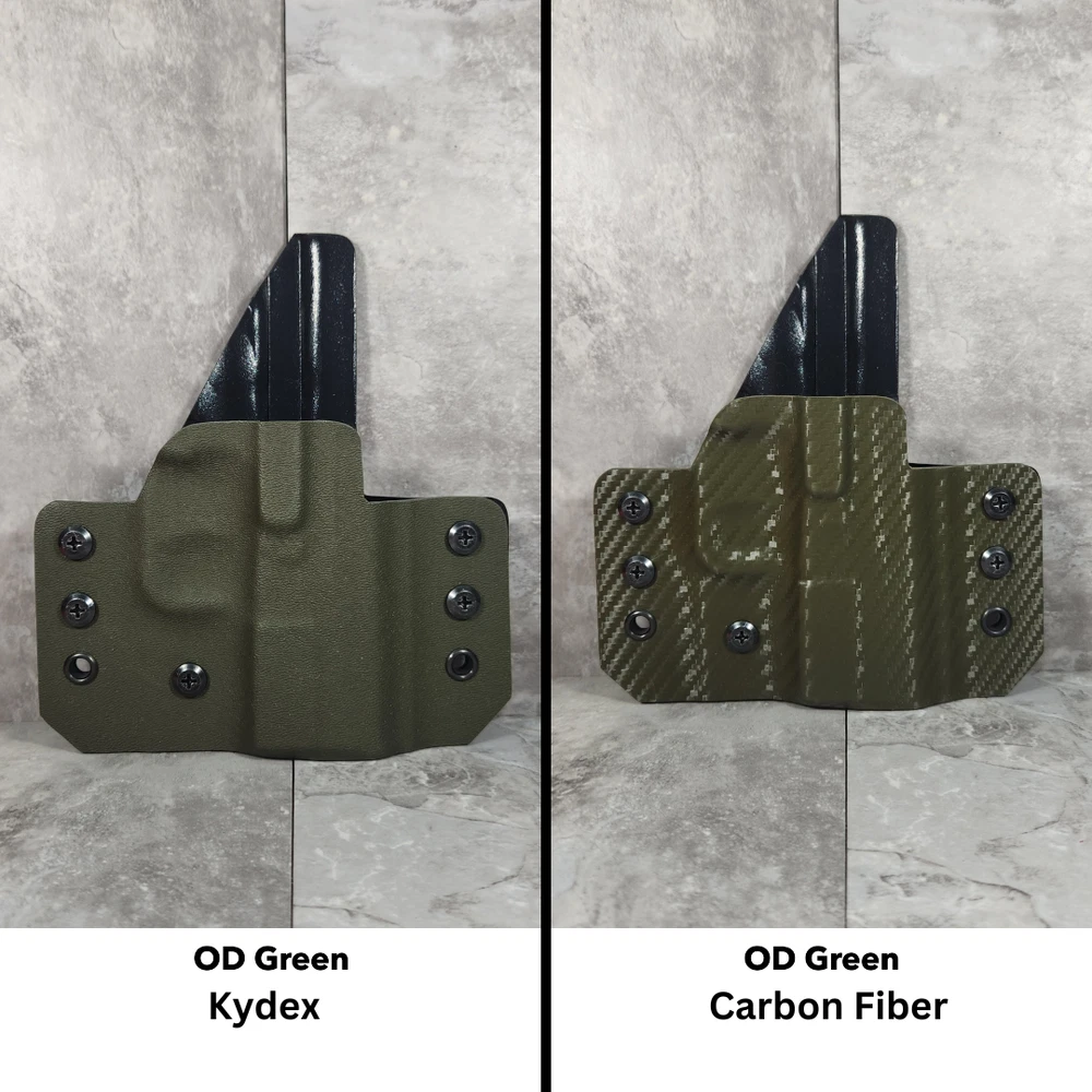 Your holster may look different than what is shown. The concept will be the same as shown. All Holsters will be cut Optics ready regardless of sweat guard option. Holster will have a black kydex back regardless of color option. If you would like one of our colors other than black just add it to the seller notes. Example (Coyote Brown Kydex) or (Coyote Brown Carbon Fiber) The flashlight is required for all flashlight holsters. (Please Note a Glock 30 SF will not fit in our Glock 30s holster) More Models Coming Soon. Made in the USA Built to order Lifetime Warranty Free Shipping to the lower 48 only Return Policy Our return policy is designed to make your shopping experience as easy and stress-free as possible. If you are not completely satisfied with your purchase, you may return it within 30 days of the item received date (Customer pays for return shipping). The item must be in its original condition and packaging. We will issue a full refund for the item. Please contact us to initiate the return process.