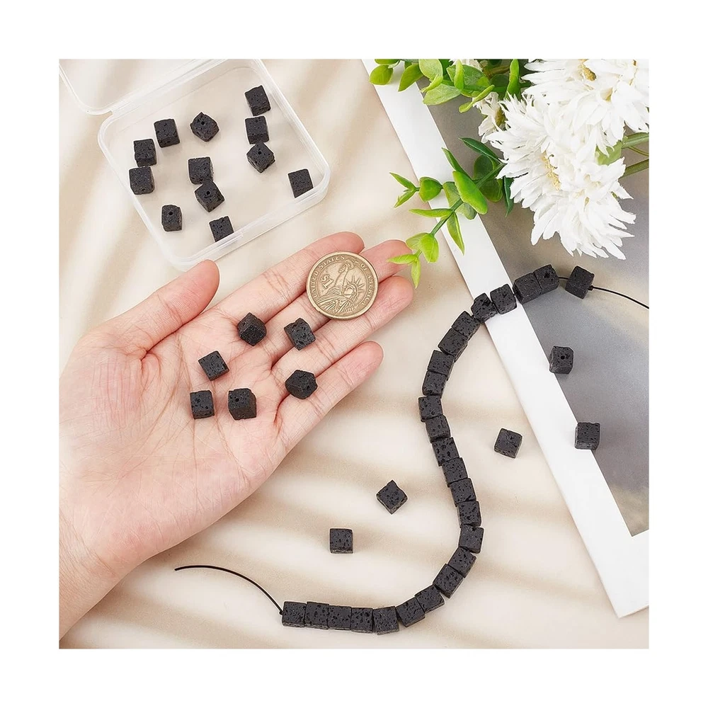 OLYCRAFT about 45~48Pcs 8x8mm Natural Lava Beads Black Cube Lava Beads Square Lava Beads Black Chakra Beads Round Loose Gemstone Beads Energy Stone for Bracelet Jewelry Making DIY Crafts Product Details Size: 8mm Brand: Unbranded MPN: G-WH0018-034B-US13 UPC: Does not apply EAN: Does not apply Package Dimensions: 7.44 x 1.57 x 0.63 inches Item Weight: 1.94 ounces Manufacturer: OLYCRAFT Country of Origin: China Date First Available: July 5, 2023 Package & Size--Package includes 1 strands black square lava beads, about 45~48pcs/strand, about 8mm wide, 8mm long, 8mm thick, hole: 1mm. Packed in a box, protect the beads from dust and broke, convenient to carry and store. Premium Quality--Selecting high quality natural volcanic stone, carefully grinding, drilling and polishing, the exquisite craftsmanship makes all the beads are perfect in shape and comfortable to touch. Metaphysical Property--Lava stones strengthen our connection with Mother Earth. It means strength and protection which provides guidance and understanding when facing with change or anger. Wide Application--Lava rock stone beads are excellent for necklaces and bracelets making, beading, jewelry making, DIY gifts, and great for essential oil diffuser bracelet for men and women. Unique Bead--Due to the natural composition, the stones may have tiny flaw. Meanwhile, cutting or polishing also makes every piece of gemstone vary in color and size.