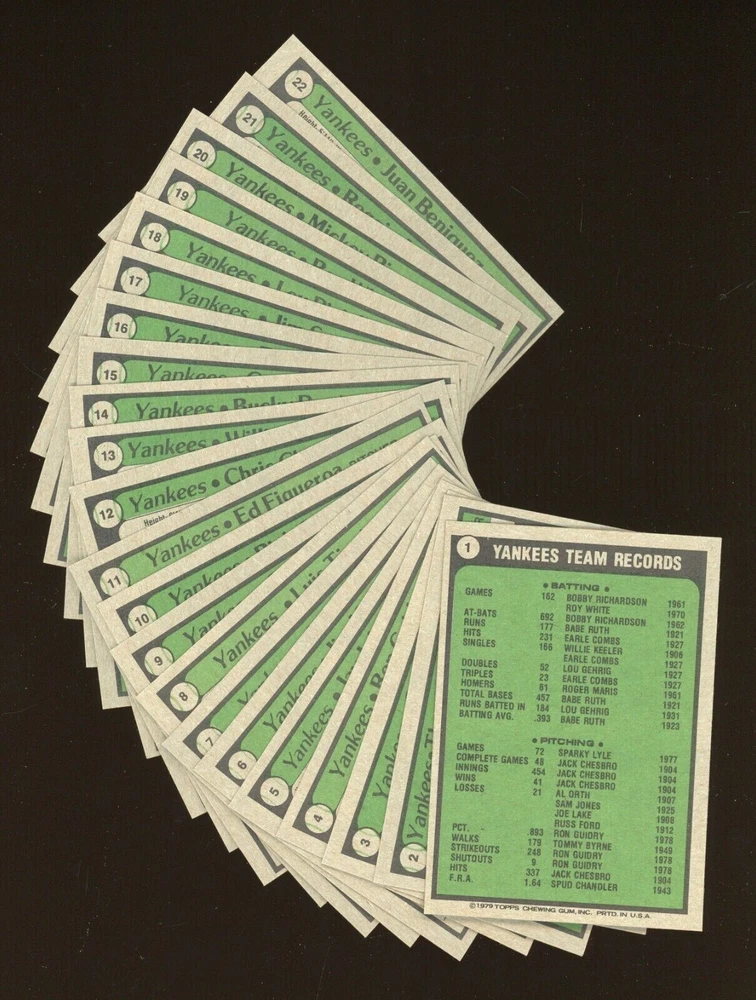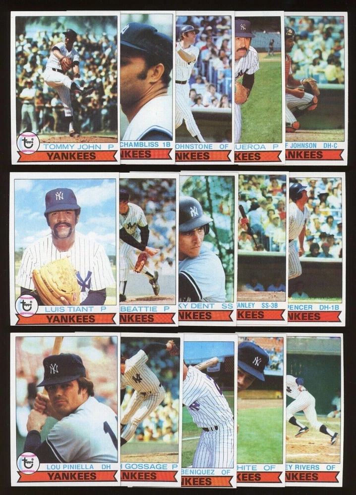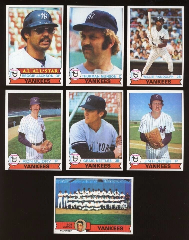 Vintage: Yes Set: 1979 Topps Burger King League: Major League (MLB) Sport: Baseball Card Size: Standard Season: 1979 Number of Cards: 22 Manufacturer: Topps Language: English Year Manufactured: 1979 Player/Athlete: Goose Gossage, Graig Nettles, Lou Piniella, Reggie Jackson, Ron Guidry, Thurman Munson, Tommy John, Willie Randolph Country/Region of Manufacture: United States Type: Sports Trading Card Team: New York Yankees