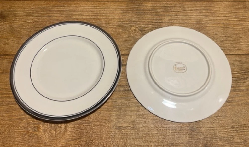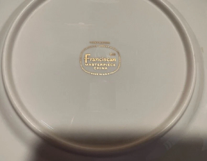 Salad Plate Brand: Franciscan Pattern: Huntington Salad Plate Brand: Franciscan Pattern: Huntington Platinum Trim, Pin Line & Verge Made of Porcelain This Plate Measures 8 3/8" diam These China Pieces have been sitting Untouched in a china cabinet for the past 40+ years Crafted In USA Hand Wash Status: Discontinued Actual: 1948 - 1981 Piece Code: SP Condition: Used NO CHIPS No CRACKS, CRAZING No UTENSIL MARKS If For Any Reason You are Not Completely Satisfied With Your Purchase, Just return It Within 14 days of Delivery For A Refund of The Purchase Price Less the Actual Cost of Shipping & Handling & 20% Restocking Charge Returns are Shipped At Buyers Expense Be sure to add me to Your Favorite Seller List ! <img src="https://ti2.auctiva.com/web/aswCredit.gif" border="0"><br><a href="https://pages.ebay.com/seller-center/listing/listing-advanced-sellers/third-party-listing-tools.html#auctiva" target="_blank"><img src="https://ti2.auctiva.com/images/sc1line1.gif" border="0"></a> Track Page Views With Auctiva's FREE Counter