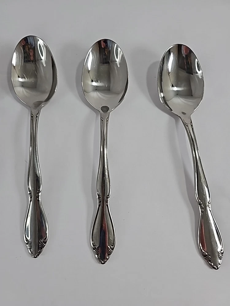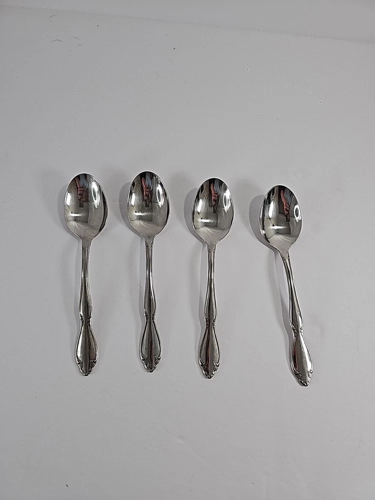 ONEIDA Set Of 4 Stainless Steel Flatware Spoons Made In USA Floral Vintage.