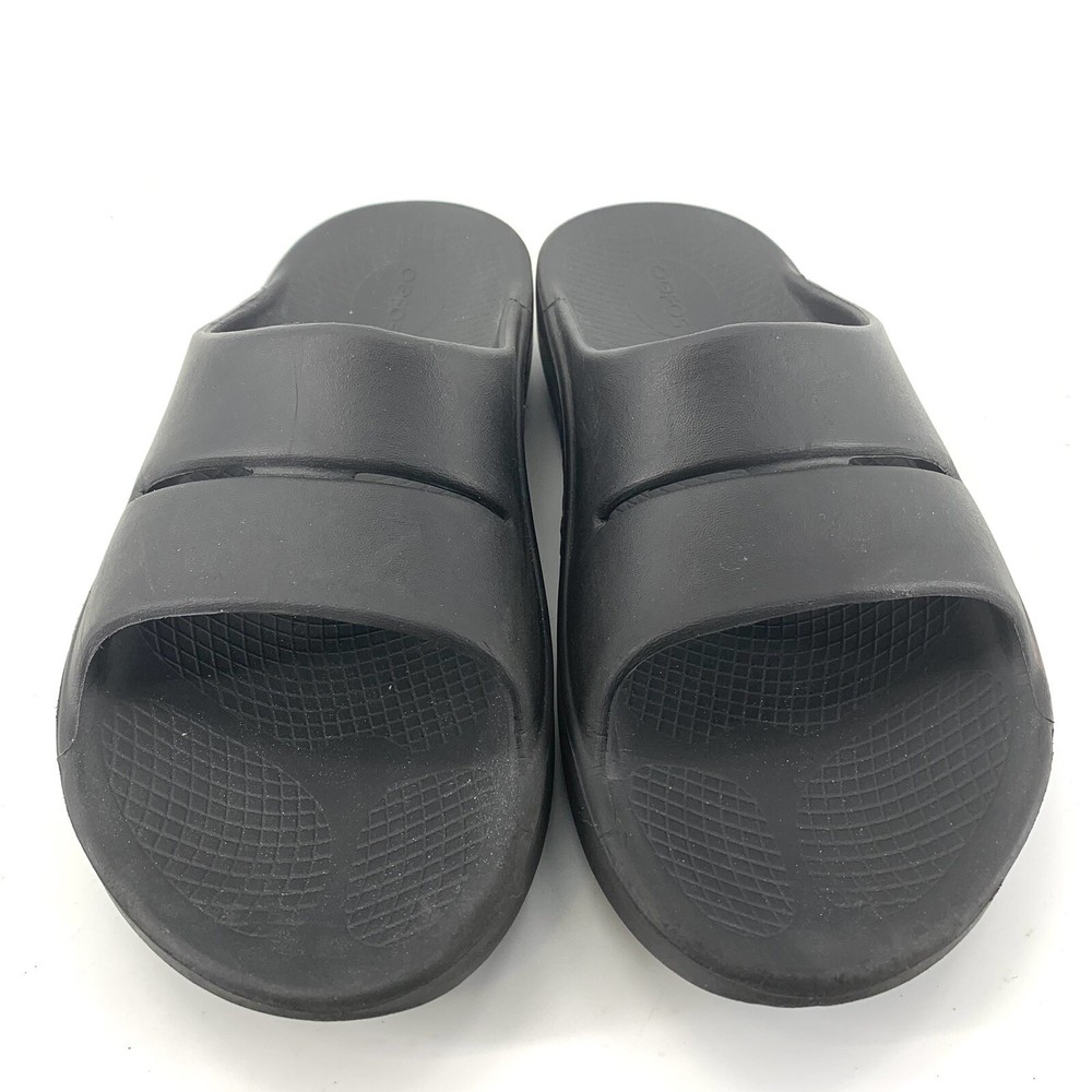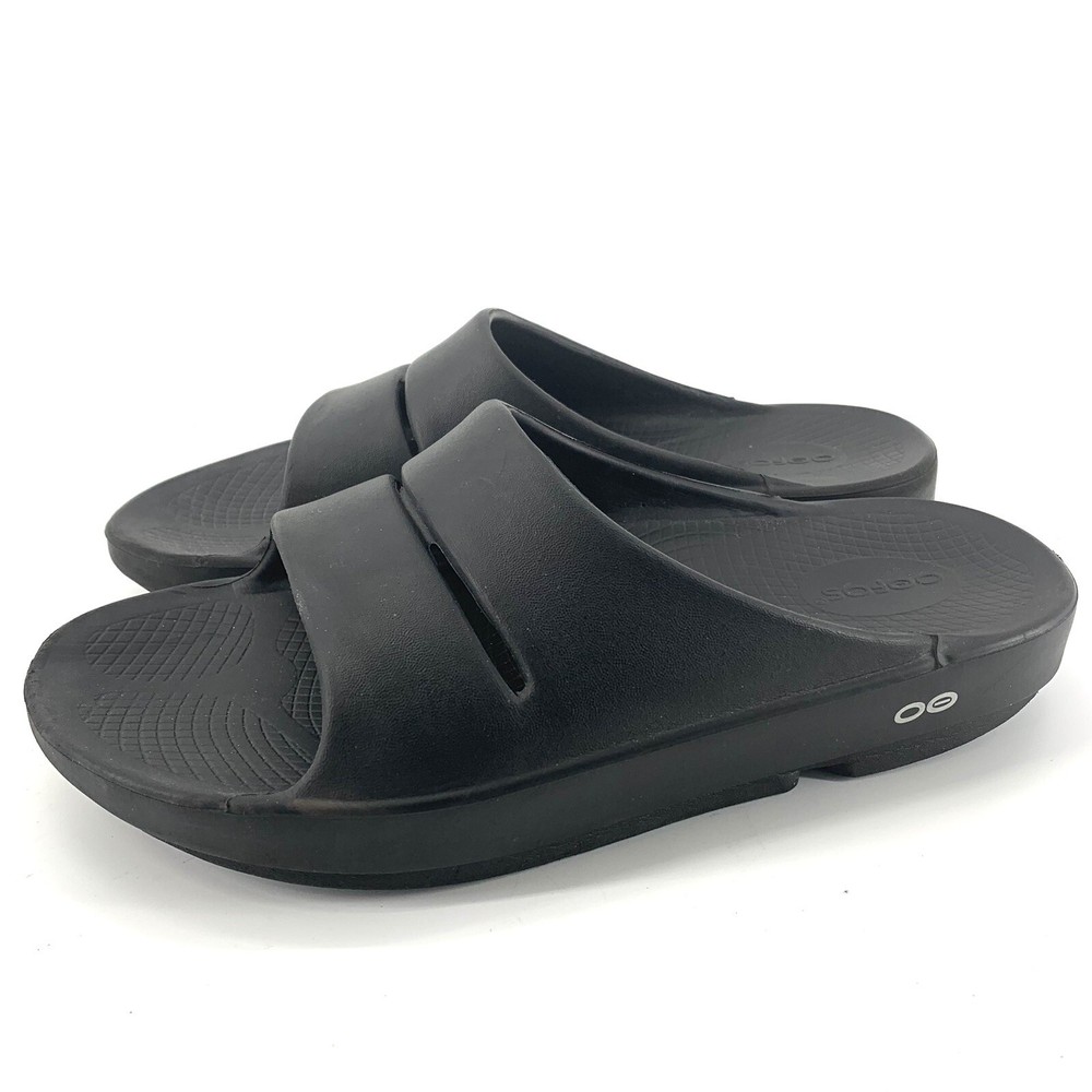 OOFOS OOahh Recovery Slide Sandal Black Men's 8 Women's 10. Item is in good preowned condition normal signs of use as pictured.