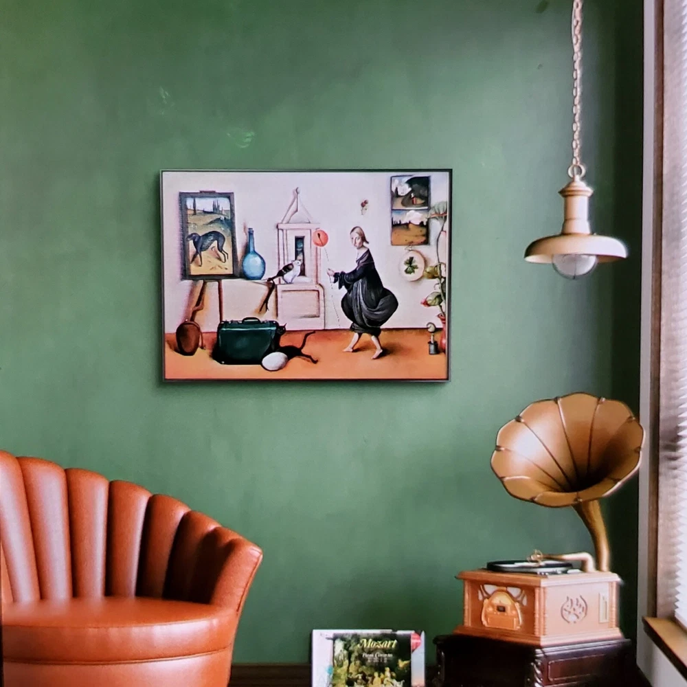 Original oil painting titled "Uncharted" by surrealist painter Rye Watts. Gallery shown piece. Installed in aluminum alloy brushed bronze floater frame. Framed measurements: 25.5 x 18.5 x 2" The painting is signed by the artist and comes with a Certificate of Authenticity. It is ready to hang as stretched canvas in wired floater frame. All artwork shipped directly from the artist. Free shipping in U.S. Title: Uncharted Artist: Rye Watts Medium: Oil on Canvas Year: 2024 ★ Shipped in heavy cardboard and sustainable paper padding. ★ Shipped with a tracking number. ★ If you have any questions, please message me and I can add photos or video. ABOUT THE ARTIST Rye Watts is a pop surrealist artist based in Portland, Oregon.