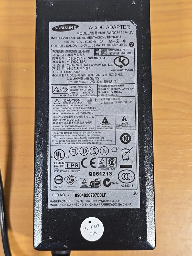 This is an authentic OEM Samsung TV power adapter with model number SAD03612A-UV. It is compatible with Samsung TVs and is made in China. The adapter is designed to provide AC power to your TV and has a voltage of 12V and current of 3.0A. It is a reliable and efficient power adapter for your TV. The adapter is suitable for use with various Samsung TV models and is an essential replacement part for your TV. It is easy to use and ensures that your TV is always powered on. This power adapter is perfect for anyone who needs a replacement or an extra adapter for their Samsung TV. PLEASE CHECK PHOTOS CAREFULLY FOR CONDITION, MEASUREMENTS, and COLOR *Please ask any questions or request additional information before purchasing ** Please check photos carefully for item and condition *** Colors may vary due to lighting conditions or screen resolution πΊπΈ FAST SHIPPING πΊπ² PLEASE REMEMBER TO LEAVE A POSITIVE βββββ FEEDBACK. ** A 20%+ restocking fee will be deducted for all returns, not in original condition ** If there are any problems, please reach out to me before opening a return claim. ** Buyer Is Responsible For The Shipping Cost Of The Returned Item. ** Please Use Delivery Confirmation. ** Only The Cost Of The Item Will Be Refunded ** Shipping Cost Will Not Be Refunded ** If free shipping, the original shipping cost will be deducted from the refund amount. ** Item Must Be In The Same Condition It Was Sent Thank you. ORANGE PICKERS and RESALE π π π π π π