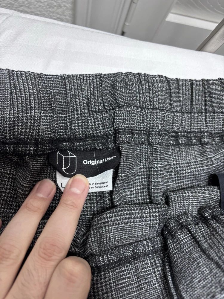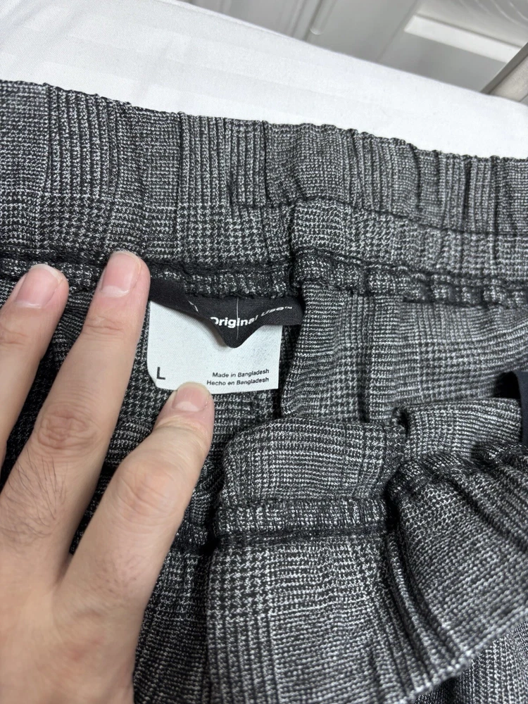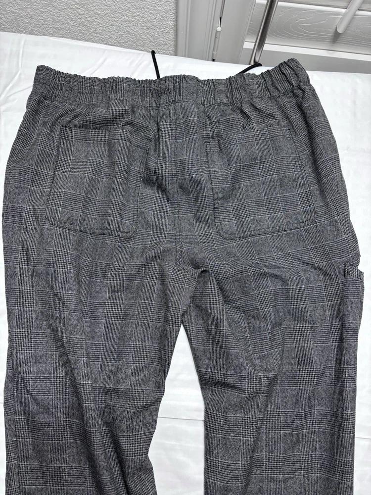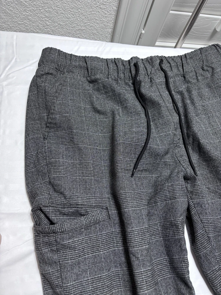 ORIGINAL USE Jogger Pants Mens Gray Black Drawstring Tapered Leg Stretch large . Pre owned shipped with usps ground advantage.
