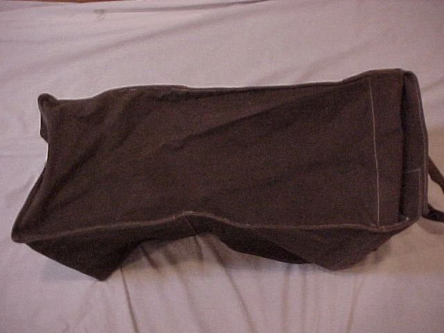 ORIG'L, VG+ Army Bag/Ballot Box For Mailing/Voting in the Field-SALE PRICED! ORIG'L, VG+ Army Bag/Ballot Box For Mailing/Voting in the Field-SALE PRICED! Click images to enlarge Description ?This is an ORIGINAL mail bag or ballot box utilized by the Army for either purpose. This bag was used presumably to transport mail or official correspondence intended for or sent by Army personnel while overseas. It also could be used to receive ballots cast while in the field, although that is just conjecture on my part. The bag is made of very heavy olive drab #7 canvas, with a heavy wire apparatus at the top which threads through a series of metal "wickets" protruding through rectangular grommets and culminates in a wire circle which allows for padlocking. When the bag is full or the mail run needs to be made, the slot in the bag can be covered by extending the flap with the canvas strap all the way over the mail slot and then re-inserting the metal wire apparatus to seal the bag for transporting (see images below). The bag is in VERY GOOD condition, with one small rip in the bottom panel (see last image below). The canvas bag is 24" deep by 15" x 12". Here's an opportunity for the advanced gear collector or re-enactor to obtain a rare piece of gear associated with operations "in the field". The buyer will have my usual unconditional guarantee of authenticity and a five-day ( not the 14-days they insert in my listings without my consent ) right of inspection and right of return/refund privilege. excluding postage. Please scroll downward to see the last three images! PLEASE NOTE: Unless the buyer requests priority mail, the bag will be mailed by parcel post mail, with the unused postage being refunded after mailing. Condition: Used Payment Paypal Paypal: PayPal is gladly accepted and is accommodated through the checkout or may be made directly from PayPal's website at www.paypal.com. Your item will be mailed the next business/mailing day after your Payapl payment is received, unless I happen to be out of my office. Payment Policy: PayPal: PayPal is gladly accepted and is accommodated through the checkout or may be made directly from PayPal's website at www.paypal.com. Your item will be mailed the next business/mailing day after your Payapl payment is received, unless I happen to be out of my office. Shipping Domestic shipping: Weight based Shipping Charges. Domestic Carriers are: Usps Priority I will ship to: United States Weight: 15 lbs. Shipping and Handling: Please check eBay's Shipping & Payment tab Hello! I'm a militaria collector like you and I do this as a sideline to my own collecting. Nonetheless, I'll handle your order in a business-like and professional manner. Thanks for your business! Vendio Images: More than just a pretty image. 250+ Mobile Responsive & Active Content Free Listing Templates with Vendio Sales Manager. Vendio provides powerful selling automation for sellers of all sizes. Get business information that counts! - Vendio Counters are active content free.