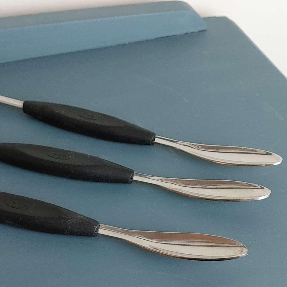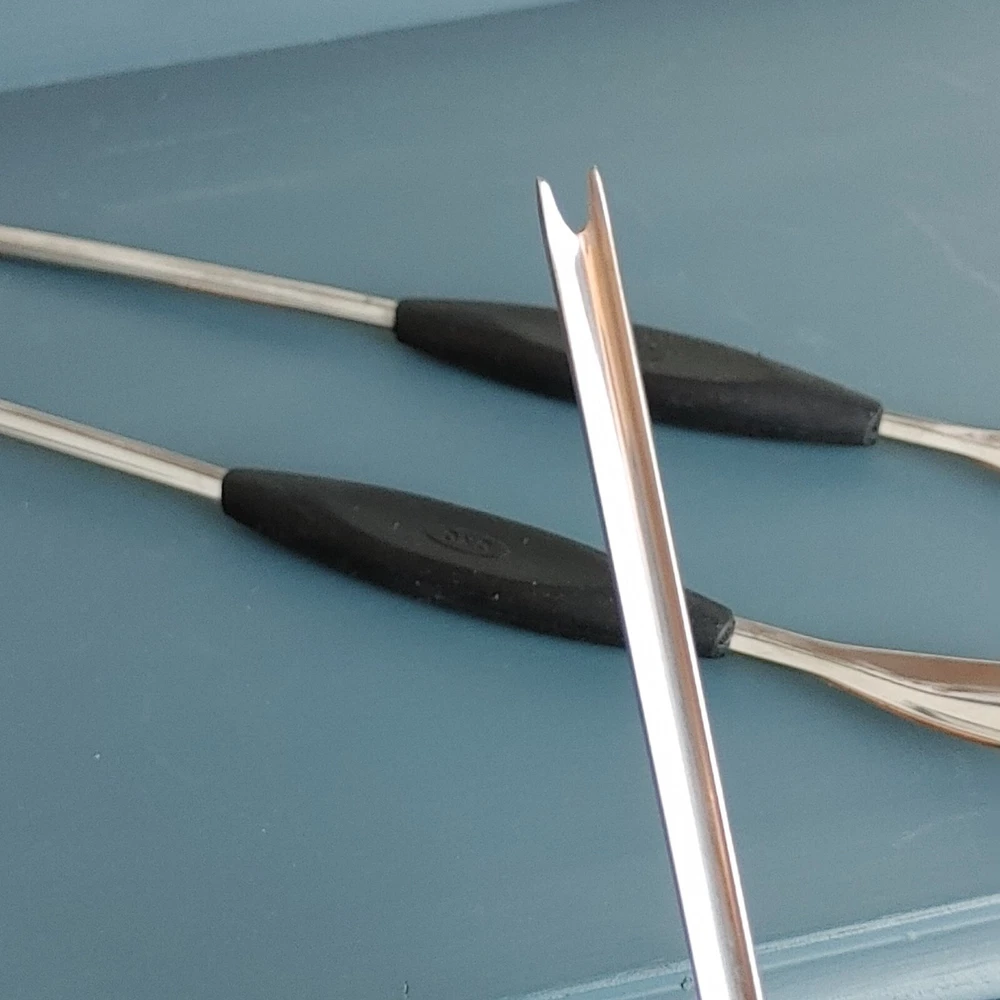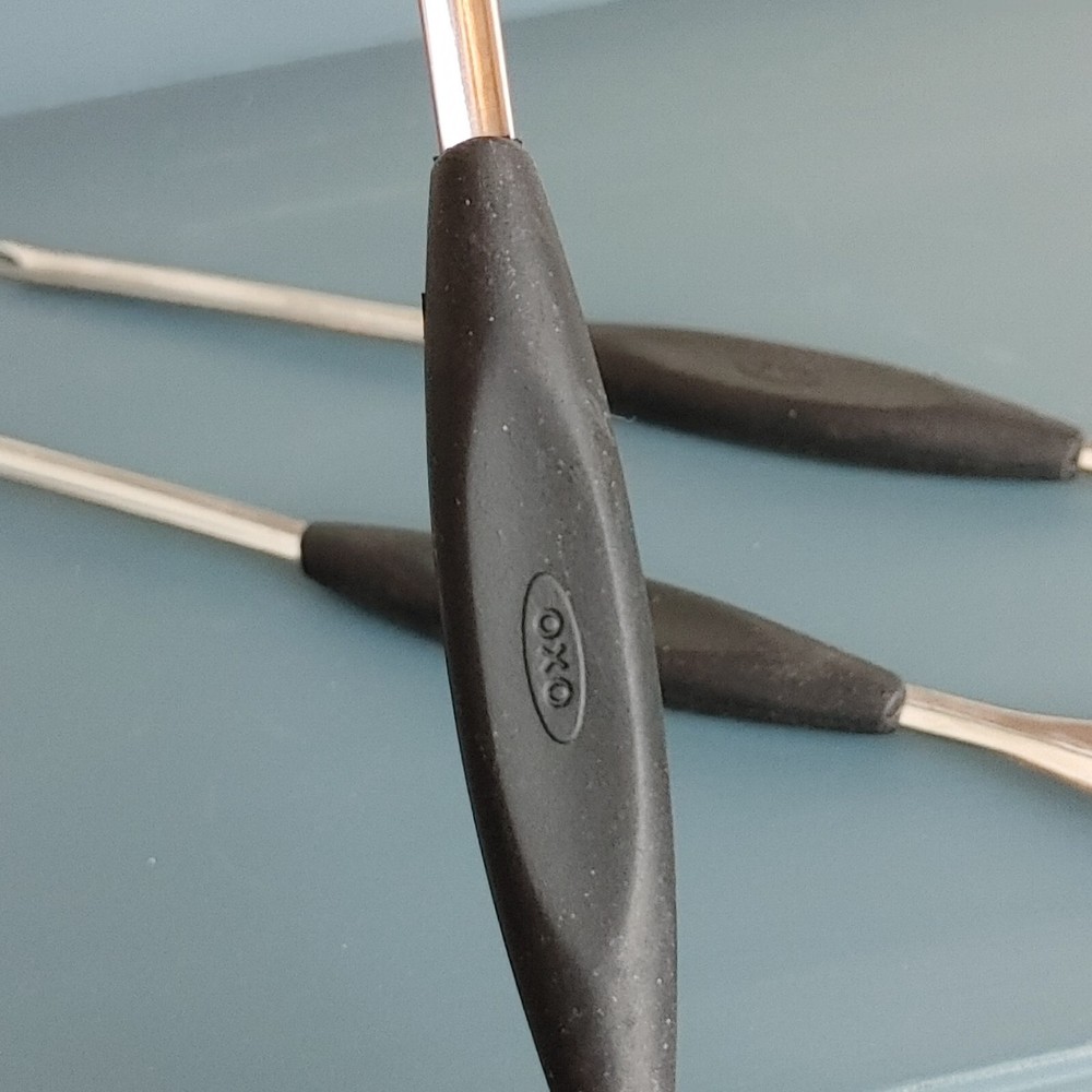 Set of 3 OXO Good Grip Seafood Utensils Lobster or Crab Fork Pick and Spoon Stainless Steel Fork pick, and spoon on other end. Excellent condition. Rubber grip handle. Made by OXO. Appx 9" in length Ships FAST from Canada with Tracking Thanks for shopping our store CDN to USA Currency exchanges upon payment Please Follow Our Store for Updated Weekly Items . We ship UPS, Canada Post and Fedex as postage requires. Thank you for being a valued customer!