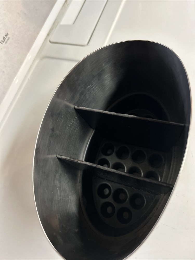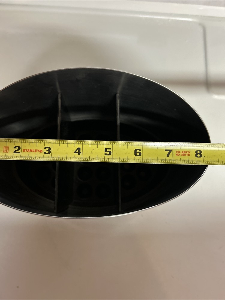 Keep your kitchen utensils organized and easily accessible with the OXO Good Grips Stainless Steel Steel Square Utensil Holder Center Divider. This medium-sized holder is designed with a center divider and oval shape, making it perfect for storing a variety of utensils. The durable and sturdy stainless steel material ensures that your utensils will be safe and secure while also adding a touch of elegance to your kitchen decor. The OXO Good Grips Utensil Holder is designed with a removable bottom, making it easy to clean and maintain. Its features include stainless steel construction, a center divider, and a durable and sturdy design. This utensil holder is perfect for those who want to keep their kitchen neat and organized while also adding a touch of style to their dining table. Excellent used condition