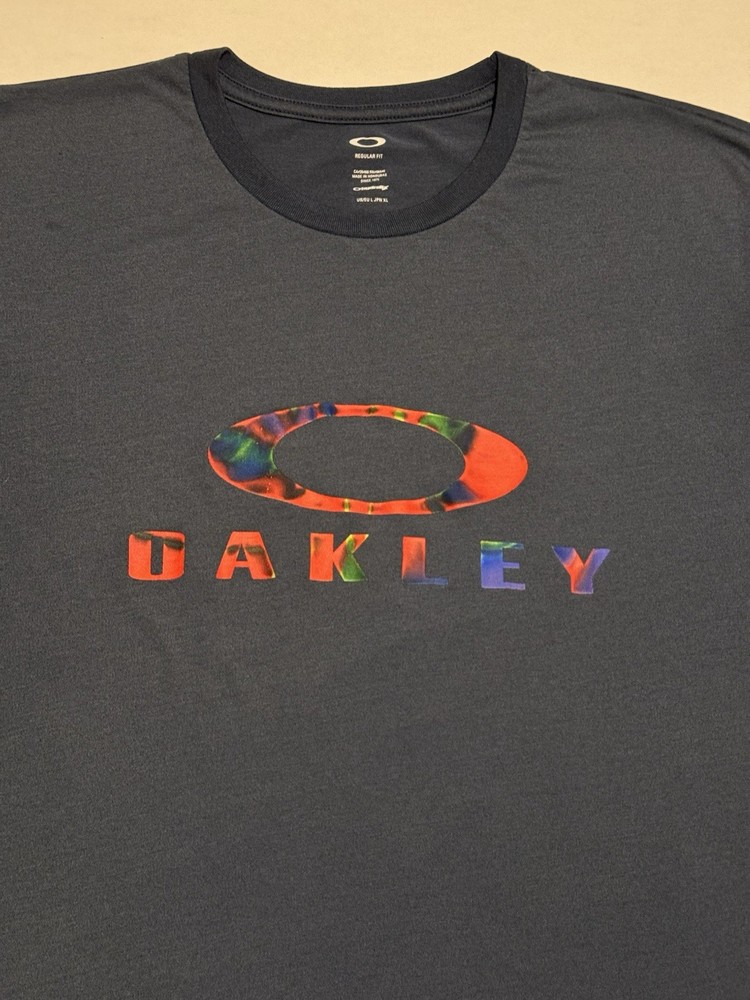Authentic Oakley short sleeve graphic tee featuring a bold multicolor ellipse logo and text print. Clean, modern design with a regular fit and soft cotton feel. Great everyday wear, streetwear, or casual athletic style. • Men’s XL (Regular Fit) • Made in Honduras • Short sleeve crewneck • Multicolor Oakley logo graphic • Clean condition Measurements (laid flat): Pit to pit ~22–23” Length ~28–28.5” Sleeve ~8.5–9” Ships fast and securely.