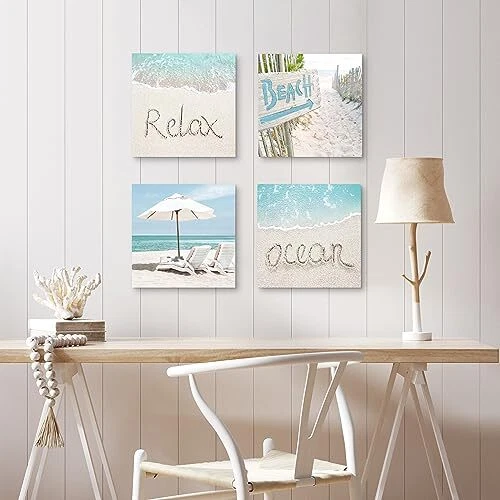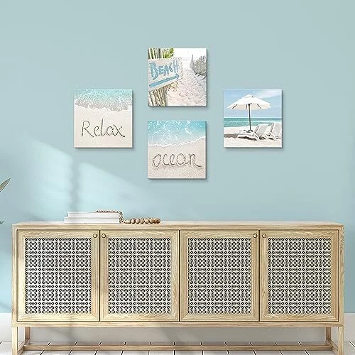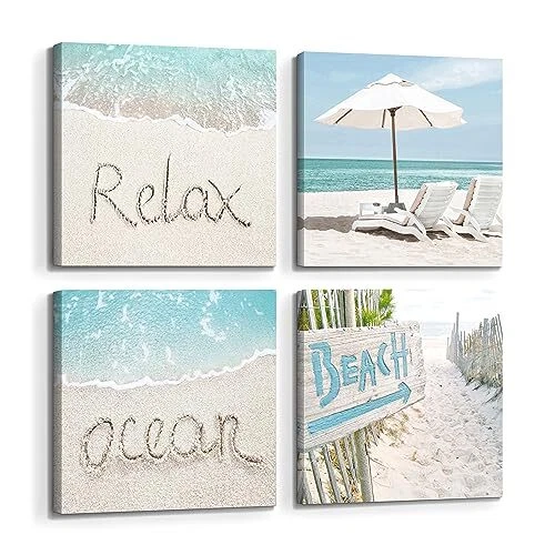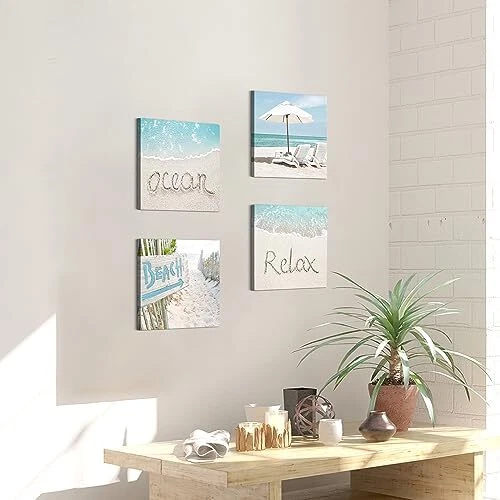 Menu 1. We require immediate payment. 2. We currently accept payment via eBay managed payments only. 3. Once payment is cleared, we will dispatch your shipment within 1-3 business days. Please refer to the "Shipping" tab for more information regarding shipping speed to your destination. Ocean Beach Canvas Wall Art: Coastal Picture Seascape Print Summer Sea Scene Artwork Relaxing Seaside Chair Painting for Bathroom Bedroom Living Room Home Decor Product description The coastal beach canvas wall art set includes 4 panels pictures, the size of each picture is 12x12 inches. With 4 panels depicting different beach scenes separately, the coastal artwork allows you to display on the wall in different creative ways, which will add a more lively and vivid vibe to the living room, bedroom, bathroom, kitchen or office The fine Giclee is adopted to the artist-grade ocean beach picture wall art on high-quality canvas with premium long-lasting ink. It is professionally hand-stretched and wrapped over a sturdy wood frame in a gallery style, providing you a coastal wall picture of great durability The ocean beach canvas wall art decor is delicate though it is protected by UV-resistant coating. Avoiding direct sunlight exposure and heavy moisture can prolong its life. Use a dry cloth to wipe off its surface when the beach coastal wall art needs cleaning The beautiful summer tropical beach wall art canvas arrives ready to hang already. Metal hooks on the stretcher bars and hanging hardware are supplied for easy and quick mounting out of the box A beautiful beach seaside canvas wall art decor is a thoughtful gift for your beloved family or friends on Christmas, Birthday, Thanksgiving day, New Year, housewarming, wedding ceremony and so on. The sandy beach ocean wall art painting prints can match any home decor style PLEASE MESSAGE US IF YOU HAVE ANY OTHER QUESTIONS, AND MANY THANKS FOR READING ALL OF THIS. Copyright ©#. All Rights Reserved.