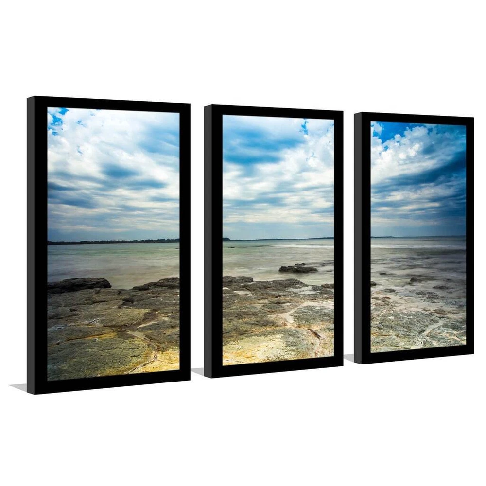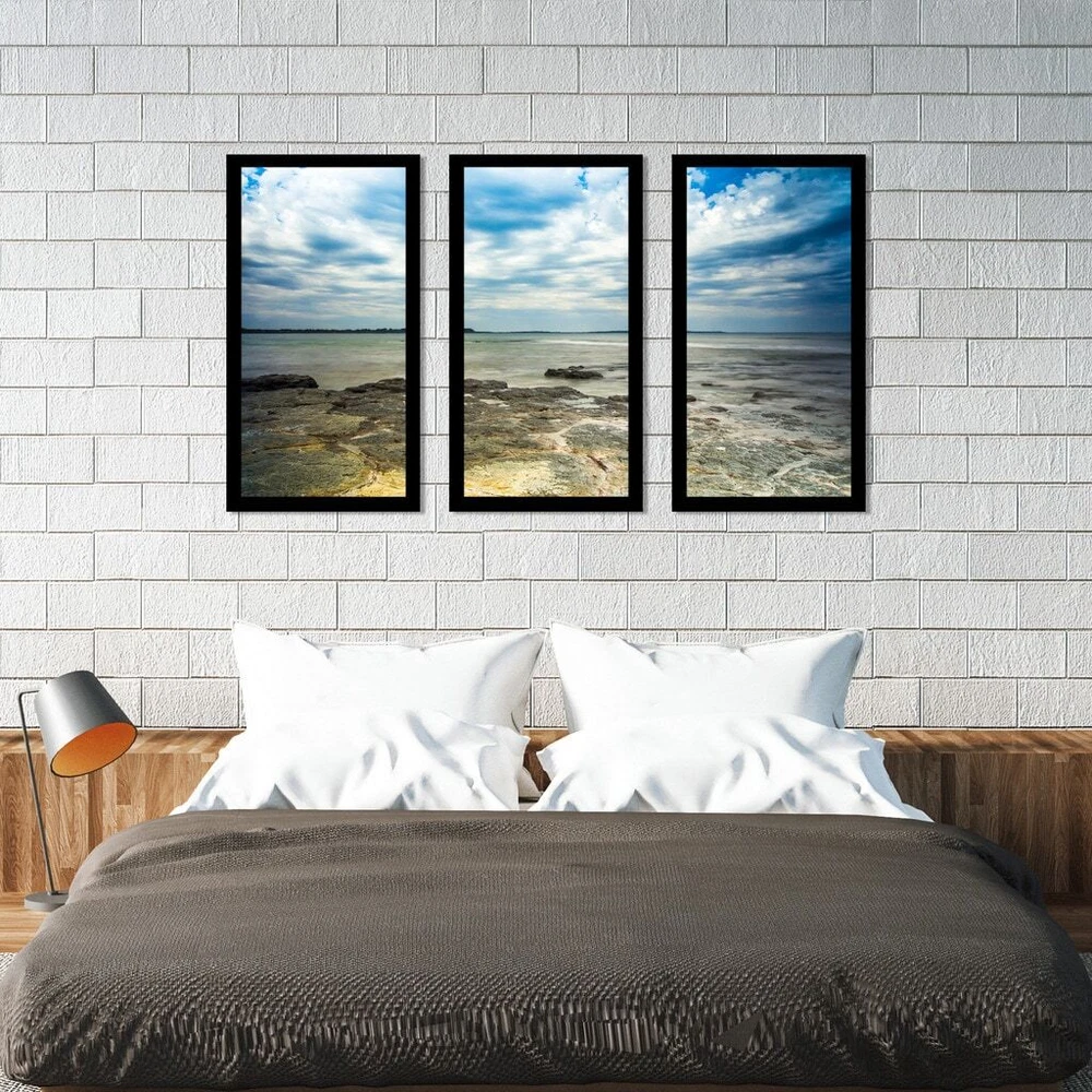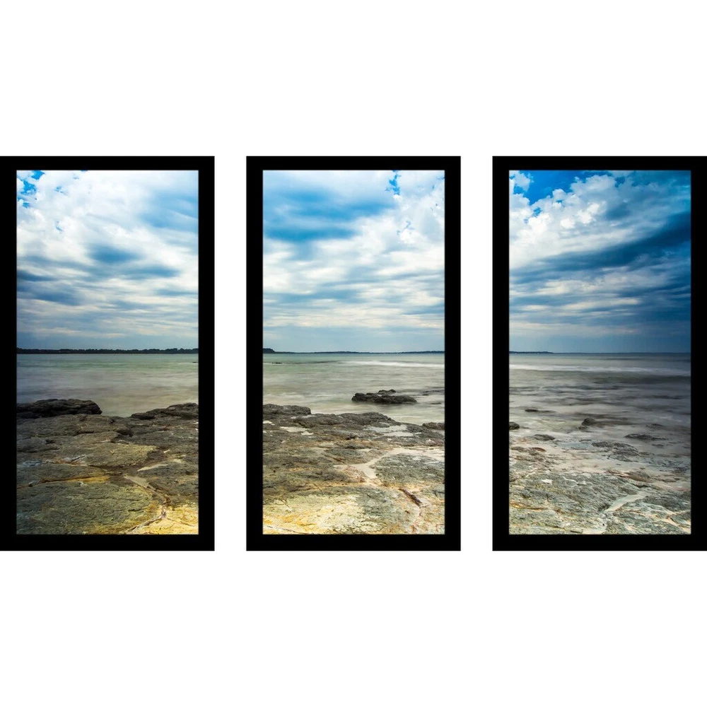 This Wall Art Set of 3 is printed on Plexiglass using a high-speed flatbed printerProducing excellent print quality with a 6-color plus white UV-curable inkjet systemThe breathtaking effect of fine art printed directly onto Acrylic is unique and exquisiteIts reflective vibrant colors creates a contemporary style of art that will bring depth to your wallsThe artwork has been reprinted from the Artists' original piece with written permissionMade in North America & Arrives ready-to-hangFrame: 1" BlackThis framed art print is being custom built for you. Please allow 10 business days for the product to leave our warehouse. Shape: RectangleOrientation: HorizontalSubject: Sea & Shore, PhotographyStyle: Fine Art Giclee Free Shipping Over $49.99* Details "Ocean Rocks" Framed Plexiglass Wall Art Set of 3 Product Description: This Wall Art Set of 3 is printed on Plexiglass using a high-speed flatbed printerProducing excellent print quality with a 6-color plus white UV-curable inkjet systemThe breathtaking effect of fine art printed directly onto Acrylic is unique and exquisiteIts reflective vibrant colors creates a contemporary style of art that will bring depth to your wallsThe artwork has been reprinted from the Artists' original piece with written permissionMade in North America & Arrives ready-to-hangFrame1" BlackThis framed art print is being custom built for you. Please allow 10 business days for the product to leave our warehouse. ShapeRectangle OrientationHorizontal SubjectSea & Shore, Photography StyleFine Art Giclee
