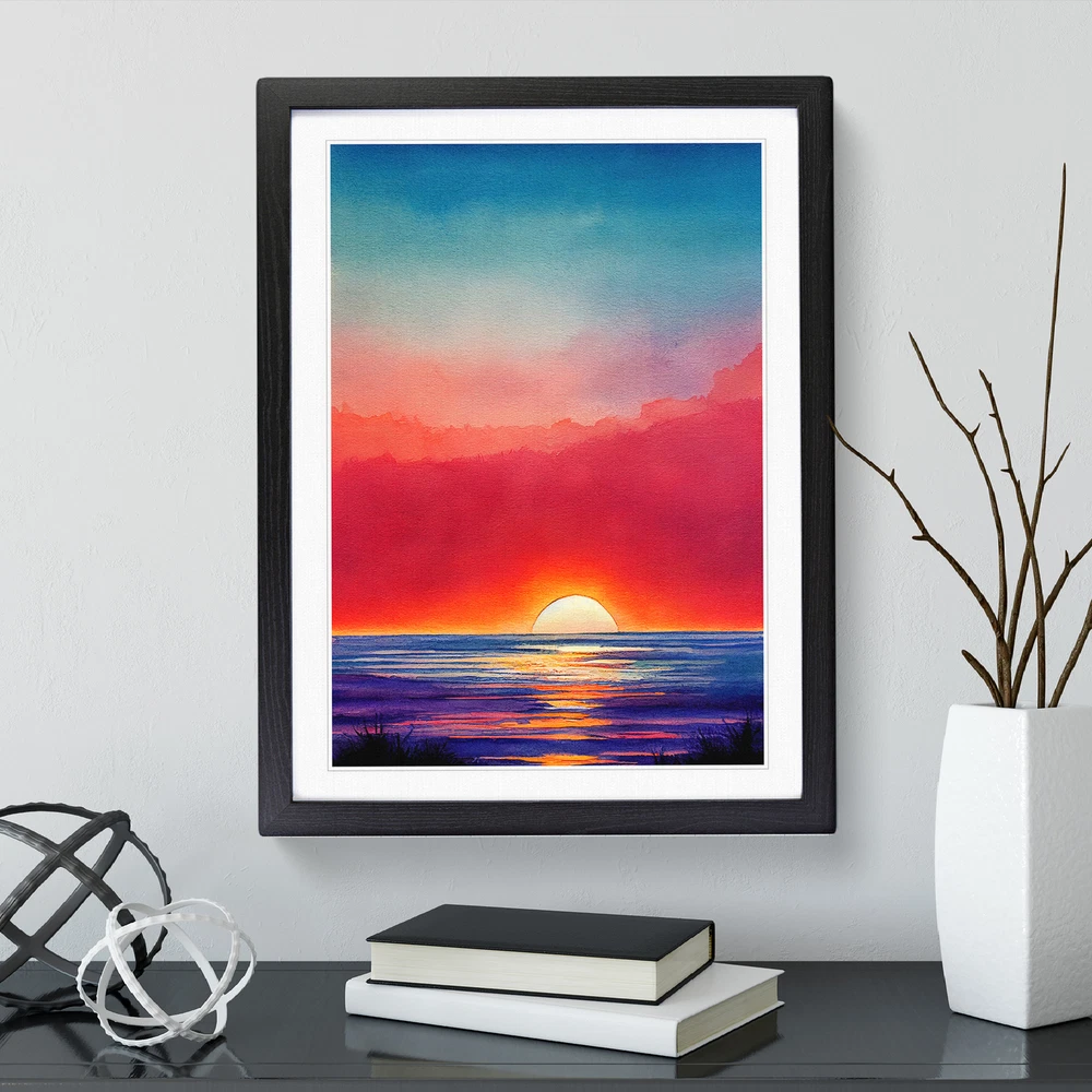 Transform your living space with our captivating framed wall art prints. Crafted in the UK, the stunning Ocean Sunset In Watercolour No.1 framed print is designed to elevate your home decor. We utilise high-quality inks to ensure the colours of the artwork are rich, vibrant, and true to life. The print seamlessly fits within a contemporary frame, creating a stylish wall art picture that is ready to hang in your living room, lounge, bedroom, dining room and home office. Visit Our Shop eBay Message Framed Art Print Enhance your living space and showcase your individual style with our framed prints. Each design is printed upon premium art paper with fade-resistant inks, ensuring the colours remain rich and vibrant for years to come. The print is encased in a ready-to-hang frame, offered in black, oak, or walnut, and safeguarded by shatter-resistant Perspex. An ideal addition to your home, and the perfect gift choice. Like what you see? Visit our eBay store to see more. Premium Quality : The design is printed on quality art paper, enhanced with fade-resistant colours. Ready to Hang : The frame is pre-fitted with hanging hardware, making wall mounting simple, safe and secure. Frame Dimensions : A4 - 25 x 34 cm / A3 - 34 x 46 cm / A2 - 46 x 64 cm. Fast Shipping : Prompt, reliable UK-based dispatch. Customer Satisfaction : Our priority is your satisfaction which is why we offer a hassle-free return policy. Payment You can pay for your order safely and securely via credit or debit card, Apple Pay, Google Pay, and PayPal. Shipping Production times are 1 to 2 working days. Orders are sent via Royal Mail or Evri (depending on size). Returns For your peace of mind, we have a 30-day returns policy in place. Please, contact us for more details. At Big Box Art, we are dedicated to providing high-quality wall art and decorative homeware items. From the outset, we've focused on excellence in our products, service, and reputation, continually enhancing our standards. With an extensive selection of designs, you're certain to discover the perfect piece to suit your taste. ? Copyright 2021, Big Box Art. All rights reserved. Made with by eBayshopdesign.org