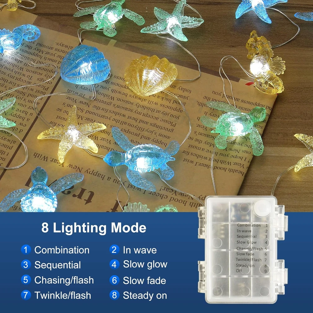 Store New Arrivals Add to Favorite View Feedback Contact Ocean Themed Decorative Lights String of Marine Life Fairy String Lights Coastal Decor 10Ft 30 Leds Battery Operated with Remote Control for Beach Bedroom Decoration Description Item model number SEABA-2023-HXT Light Source Type LED Style Sealife Power Source Battery Powered Number of Light Sources 30 Control Method Remote Theme Coastal Decor Style Number SEABA-2023-HXT Controller Type Remote Control Material Copper Additional Features Water Resistant Package Dimensions 5.28 x 3.46 x 2.6 inches; 7.05 ounces Indoor/Outdoor Usage Outdoor Material Type Copper Light Color Multicolor Water Resistance Level Water Resistant Connectivity Technology USB Special Feature Water Resistant Color Multicolor Wattage 5 watts Indoor Outdoor Usage Outdoor Included Components water resistant battery box Style Name Sealife 【Let The Beauty of Coral Reefs Creatures Light Up Your Life】Turtles, seahorses, starfish, and giant clam. Each icon is carefully designed with rich details. Each one is a work of art with our deepest love to ocean. 【Recognizable and Multiple Usage Scenarios】This copper wire lamp Star is 1.5x1 inch and it is fully light up. People can tell what they are from a distance. And the light it emits is more even and bright. They are the color of ocean water. This is mermaid will choose for her bedroom. Anyone who love ocean and beach will love this light. 【Better Quality and Safe Décor for Everyone】We use 0.45 diameter copper wire compares to 0.38 diameter of old version products, which make our item more durable. This wire will never go hot, it is also water resistant and can even work in very humid environment for a period (Keep USB and battery pack dry). Even if the lamp wire is damaged or broken, there will be no leakage. It can work safely near children and pets. 【Remote Control Provides Timer and Flicker Function】6 Hrs build-in timer provides automatic shut off (6 hours on and 18 hours off and 6 hours on again), plus brightness dimmer and flicker function, easy to use and save energy. The remote also offer different flicker mode and speed. You can easily control the lights even when it is out of your reach. 【Battery Operated】 The water resistant battery box allows you to use this product flexibly anywhere, we recommend using rechargeable batteries. Islands and beaches are always my first choice for vacation. The endless blue sea level always calms my heart. I also like free diving. Below sea level is like another world, which makes me forget all the unhappiness and boredom in life. Countless kinds of fish and turtles are like angels in this heavenly world. For some reason, my young son is also obsessed with the world. He loves all the creatures in the ocean for no reason. Therefore, it has become a great pleasure for me to observe the creatures in this world and bring their cutest forms to life. I started from small sea life and poured all my love for this blue world. I hope to share this feeling with you through my design. ABOUT US We offer the best prices around on high quality products. Our E-store includes media such as books, movies, music and games while offering electronics, toys, sporting apparel, clothing, tools, general home, garden items and more. SHIPPING We are always working hard to ensure your package arrives as soon as possible. Please understand that some factors like weather, high postal traffic, and the performance of shipping companies are outside of our control. We offer free shipping to the lower 48 states and ship within 2 business days of payment, usually sooner. We do not accept P.O. Boxes. Please provide a physical address. For shipping outside of the continental USA, we only use eBay's Global Shipping Program.The item is shipped to KY and then sent to the rest of the world. International customers are responsible for all duties and taxes. Continue to check out in order to calculate costs for shipping the item to your country. Messages regarding eBay's Global Shipping Program MUST be directed at eBay EXCLUSIVELY. RETURNS We offer a 30-Day Return Policy on items which you are not completely satisfied with. You have the option for a full-refund or an exchange of the item. No returns are available on items shipped outside of the USA. PAYMENT We accept PayPal. CONTACT US This page content is yet to come Please ad us to your favorite seller and visit again later Thank You CUSTOMER SATISFACTION We try our very best to make sure every customer is completely satisfied. If there's a problem, message us! We're happy to help. WE ACCEPT Copyright © 2021 AutoDS. | All Rights Reserved
