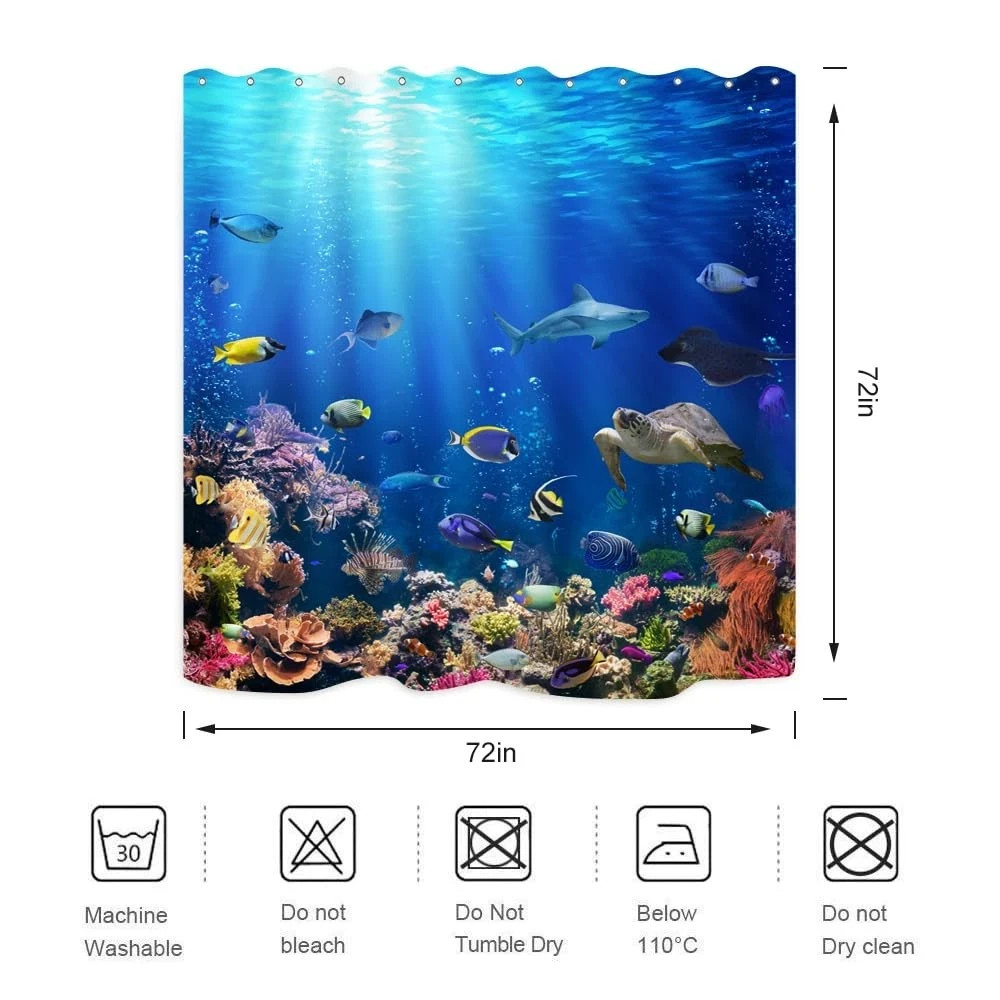 100% Money Back Guarantee if you are not satisfied with your purchase! ___________________ Description: FEATURE:Rust Proof Metal Grommets,Vibrant 3D High Definition Digital Printing Patterns,Excellent Waterproof Polyester Fabric,No smell,No fading,Environmentally Friendly. MATERIAL:High Quality Polyester Fabric,Waterproof & Smooth Fabric,Prevent Water From Splashing Effectively,No Sticking Close to the Skin while bathing,Quick-drying. PATTERN DESIGN:Ocean Underwater World Shower Curtain, Decoration Artistic Design adds a distinctive look to your bathroom,make you have a different bath feeling. STANDARD SIZE:Dimensions measure 72 x 72 Inches to fit standard bathtub showers. Ensure to provide a more comfortable and private space for you. PACKAGE INCLUDES:1 X Shower Curtain,12 X Plastic Hooks,No Extra Liner Needed,Easy To Install,Machine Washable,Firm and Durable to last for years. ________________________ 100% Money Back Guarantee: We offer 30 Day Money Back Guarantee from the day you purchased if you’re not satisfied with your product. If you have any questions about our products, please contact us as soon as possible. Customer satisfaction is our absolute priority. Shipping: We are always working hard to ensure your package arrives as soon as possible. Please understand that some factors like weather, high postal traffic, and the performance of shipping companies are outside of our control. We offer free shipping to the lower 48 states and ship within 3 business days of payment, usually sooner. We do not accept P.O. Boxes. Please provide a physical address. You will be notified via eBay messages as soon as your items ship. Delivery: We will ship out the item in 2-3 working day after receiving the payment. Usually the delivery takes 2-5 business days. If you don't receive the items after 10 days, please feel free to contact us. You will get a replacement or a full refund. Please DO NOT open a return request or leave negative feedback without asking for help . Returns (Get Free Return Label): We offer a 30-Day Return Policy on defective/wrong items or items which you are not completely satisfied with. You have the option for a full-refund or an exchange of the item. No need to buy eBay return label. Contact us via eBay messages and get free return label. Returned items must be in all of the original packaging and include all of the original accessories or items that came with it. The item and package should be in original condition. Contact Us: Any queries or issues incurred, please feel free to contact us via eBay message, we will get back to you within 24 hours. Please DO NOT open a return request or leave negative feedback without asking for help. Feedback: Your feedback is very important to us. After you get your package and you are satisfied with our service, please leave us positive feedback. We are highly appreciated for your POSITIVE feedback and 5 stars. Enjoy shopping.
