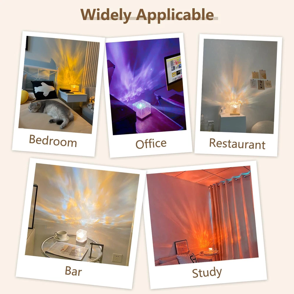 【APP & Remote Control】- The ocean wave lights projector can be controlled via the APP or remote control. Scan the QR code on the instruction manual to download the APP and you can easily use your phone to control ocean wave lamp. Customize the gradient mode, select from 16 light colors, and set timers according to your preferences. Tips: Unable to connect to APP when the ocean lamp is low on power! 【16 Colors & Adjustable Modes】- ’s unique ocean wave light feature showcases 16 different light colors, 10 adjustable brightness levels, and 4 dynamic modes. This ocean night light is perfect for decorating your bed room, enhancing photos, and creating diverse atmospheres. 【Rechargeable & Portable】- This ocean lights projector is rechargeable with a built-in battery. Touch-sensitive switch for easy on/off. Equipped with a TYPE-C charging port, aurora projector light includes a complimentary TYPE-C charging cable for recharging. Long-lasting power makes it the perfect ocean light for your home. 【Stylish Design & Magical Ambiance】- Featuring an acrylic water ripple lamp shade, this northern lights creates a dreamy and dynamic ocean wave effect, softly diffusing light. Ideal for creating a calming atmosphere in your home, it’s great for relaxing evenings and can even help soothe children to sleep. 【Perfect Gift Choice】- This water projector light is an ideal gift for Valentine's Day, Christmas, birthdays, and anniversaries. Its soothing ocean wave effects make it a wonderful addition to any bedroom, creating a tranquil night environment that helps calm both adults and children, making it a perfect choice for creating a peaceful ambiance.