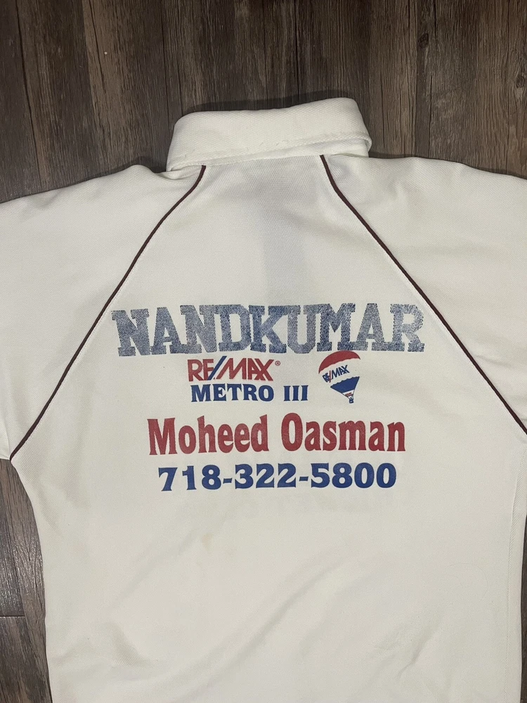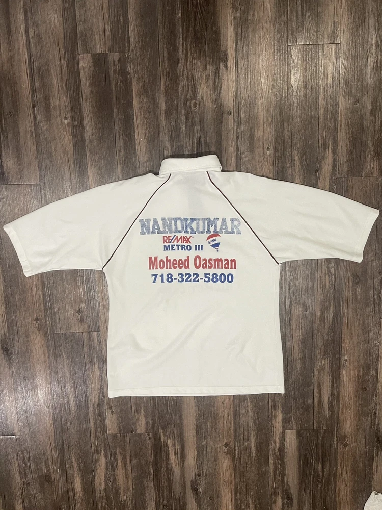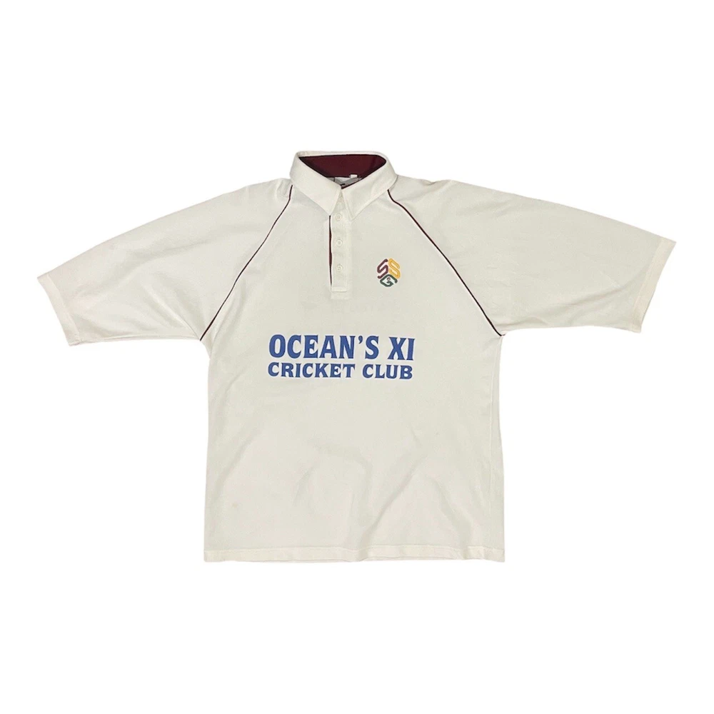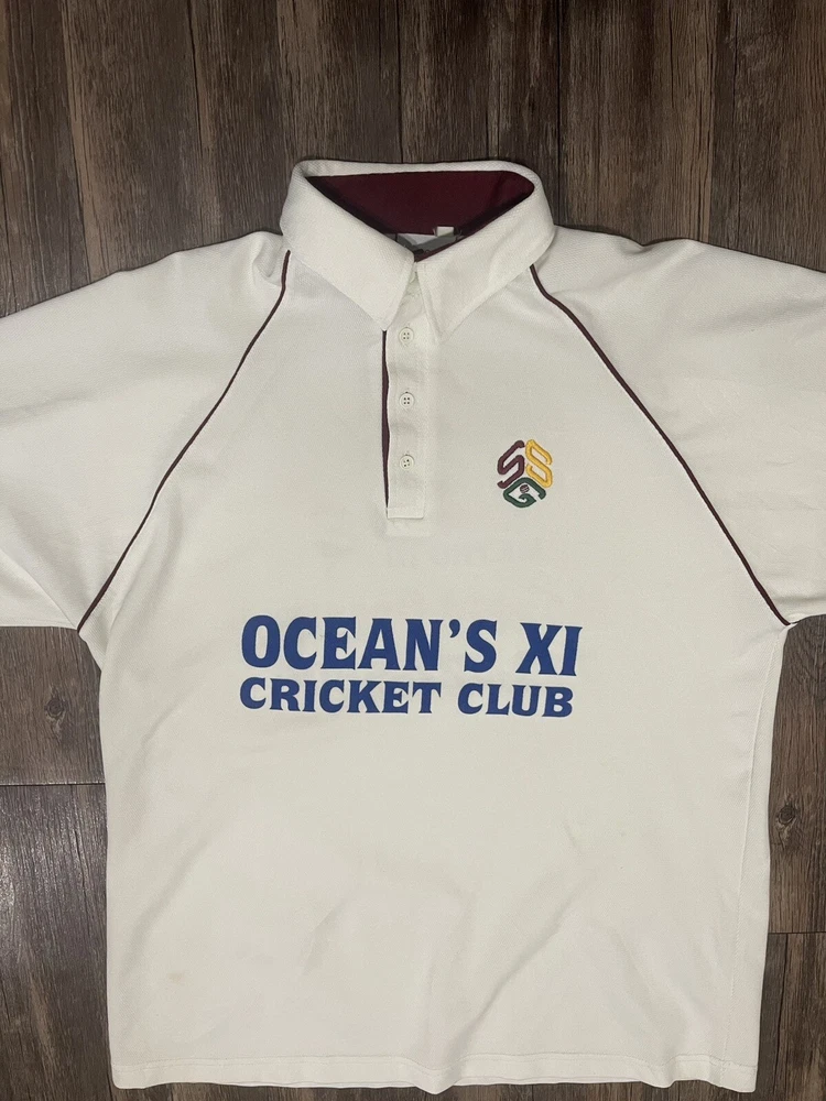 Show your support for the Ocean's XI Cricket Club with this stylish white polo shirt. The shirt features an embroidered logo that showcases your love for the team. This unisex adult jersey is perfect for any cricket fan, and it is officially licensed for your convenience. The shirt is made of high-quality material that is both comfortable and durable, making it perfect for any occasion. The polo shirt is a size large and is designed to fit most adult sizes. It is a great addition to any fan's wardrobe, and it is perfect for showing your support at the next cricket match. The shirt is made in India, and it is the perfect gift for any cricket enthusiast. Get yours today and show your love for the Ocean's XI Cricket Club! Ocean's XI Cricket Club white polo shirt with embroidered logo #cricket Measurements: 29.5x22