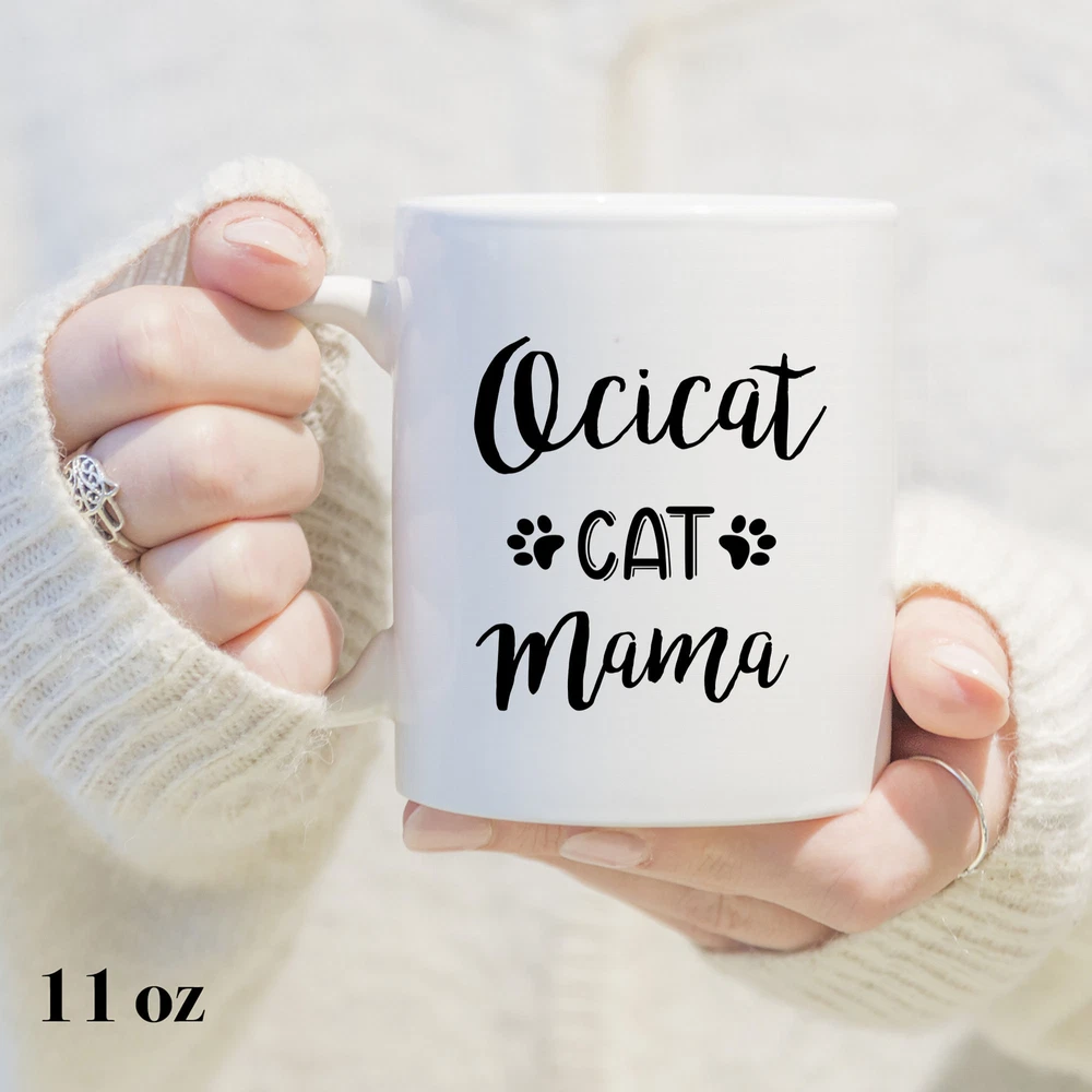 Ocicat Cat Mama Mug Ocicat Mug Ocicat Gift Ocicat Lover Ocicat Mom Ocicat Owner Product Details.. This high quality 11oz. ceramic white mug has a premium hard coat that provides crisp and vibrant color reproduction sure to last for years. Perfect for all hot & cold beverages. The highest quality printing possible is used. It will never fade no matter how many times you wash it. Material: 100% Ceramic. Print both sides. Dishwasher and Microwave Safe. High Gloss + Premium White Finish. Printed in the U.S.A. Personalized & Custom. We support personalized and custom mug to add custom, when placing an order, you can add notes to the "order note" in shipping address section. Also you can contact us directly via message. Shipping Info. Ready to ship in 1 to 2 business days, All products are made-to-order and proudly printed in the United States. Shipped by USPS and DHL, You will receive your order in 5-7 days. Replace & Refund. All products are defective during shipping broken, chipped will be replaced free of charge. You are not satisfied with the product, we will refund 100% money to you. If any other issues arise, please do not hesitate to message, we would be more than happy to assist you.