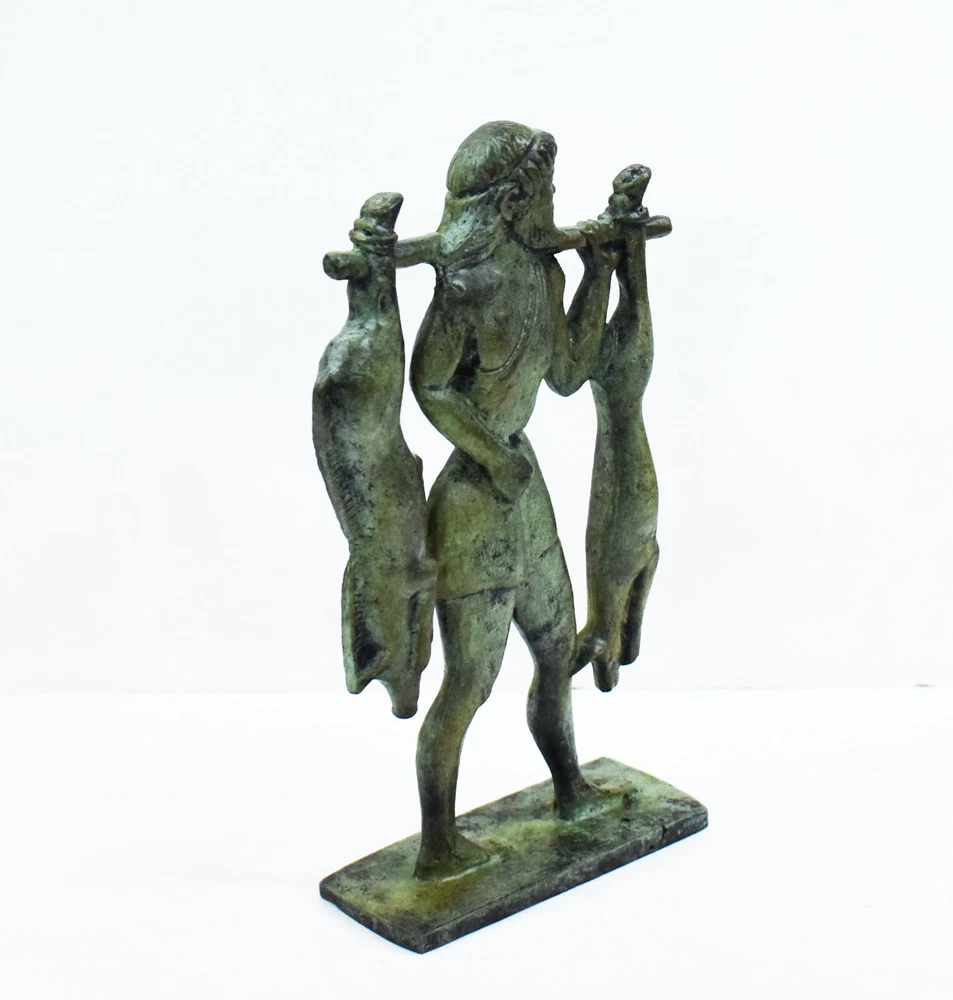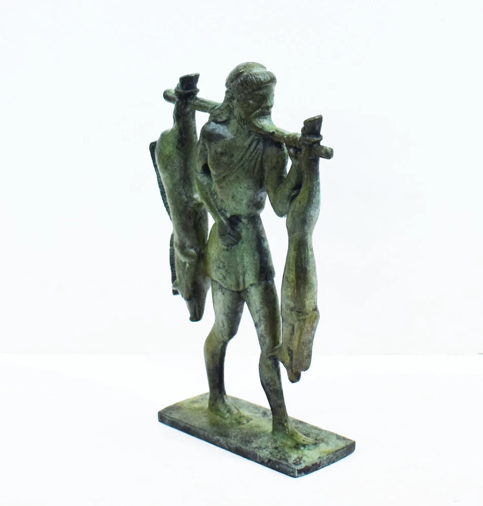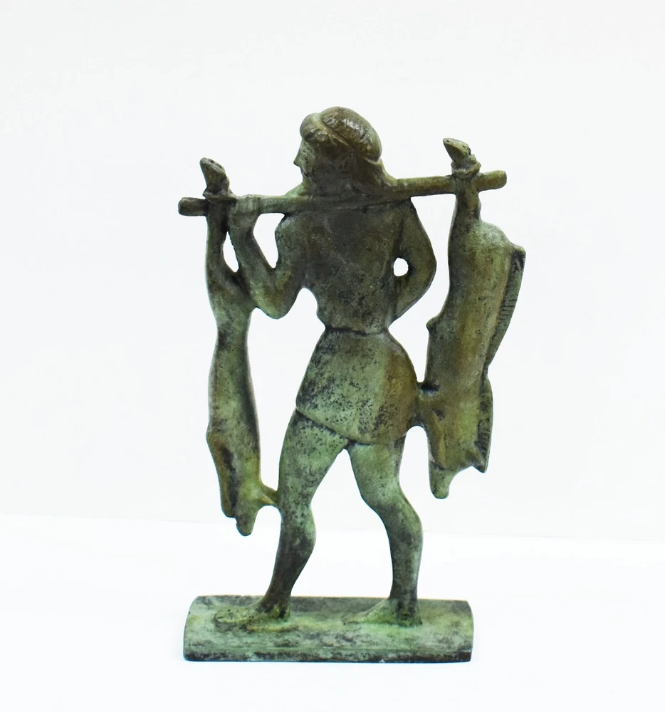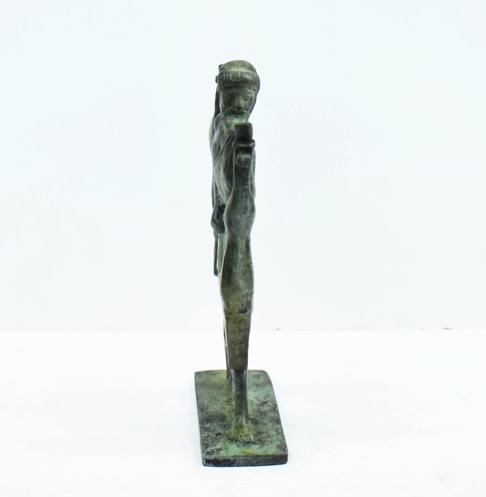 ODYSSEUS BRONZE FIGURINE Odysseus was a legendary Greek king of Ithaca and a hero of Homer's epic poem the Odyssey. Odysseus also plays a key role in Homer's Iliad and other works in that same Epic Cycle. Husband of Penelope, father of Telemachus, and son of Laërtes and Anticlea, Odysseus is renowned for his brilliance, guile, and versatility , and is hence known by the epithet Odysseus the Cunning . He is most famous for the ten eventful years he took to return home after the decade-long Trojan War and his famous Trojan Horse ploy to capture the city of Troy. All our bronze items, are cast in Greece, using the traditional 'lost wax' method. As nothing is mass-produced, there will inevitably be slight variations in patination and colouring. Each piece is, therefore, unique.(112200184302-A) Details: Condition: New, Handmade in Greece Material: Pure Bronze Height: 18 cm(7 inches) Width : 11 cm(4.3 inches) Weight : 900 g
