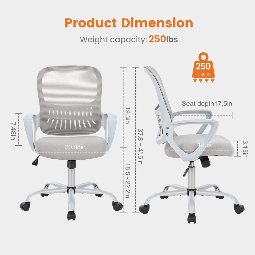 Store Categories Store Categories Bedding Mirror Table&Desk Chair&Stool Office Chair Gaming Chair Dining Chair Bar Stool Storage Stool Leisure chair Storage Supplies Pet Supplies Outdoor Products Electric Appliance Kitchen Supplies Sports Goods Heating Equipment Other Office Chair Product Description 【Comfortable Seat for All Day Comfort】- Ergonomic features an all-elastic premium mesh back and a high-density sponge seat making the mesh office chair a good choice for all-day comfortable office seating. The unique mesh design is skin-friendly and breathable, which keeps you cool all day. 【Ergonomic Lumbar Support】- The ergonomically designed office chair backrest features prominent lumbar support that fits the natural curvature of the spine, helping you maintain a relaxed posture during long hours of work or study. This office chair is a perfect gift for your family and friends. 【Multifunctional Mechanism】- The seat height of this 360° Rotating chair could be easily adjusted by the pneumatic adjustment lever, and the adjustment range is 18.5-22.2 inches. Besides, the 90 -120-degree rocking mode helps you to relax from hard work. It is perfect for the home office, bedroom, study room, living room, classroom, school, computer desk, apartment, guest workstation, gaming room or conference room. 【Smooth Movement & Stability】- Our comfy office desk chair comes with smooth and multi-direction casters, which allow you to move the chair around effortlessly. They can run smoothly on tile, wooden floors, carpets, and other floorings. The large 5-star base increases stability even at the full height range. The maximum weight capacity is 250 lbs. Payment Policy Contact Us Payment Policy Pay secure with any major credit card through PayPal and eBay manages payments. For International buyers, Import d u ties, tax and charges are not included in the item price or shipping charge. Contact Us We want you to be satisfied with your purchase. However, if you have any issues regarding your order, we have a dedicated customer service centre who will be delighted to help and resolve any issues that may arise. We strive for 100% customer satisfaction at all times. If you are not satisfied with your purchase or experience with our company, please do not hesitate to contact us. We will do our best to resolve this for you. Please check Business seller information or email through the eBay messaging system. You will need to select the "contact the seller" option (found on your eBay Order). We aim to respond within 24 hours. Our office opening hours are Monday to Friday, 9 am to 5 pm. Copyright © 2023 Dianxiaomi