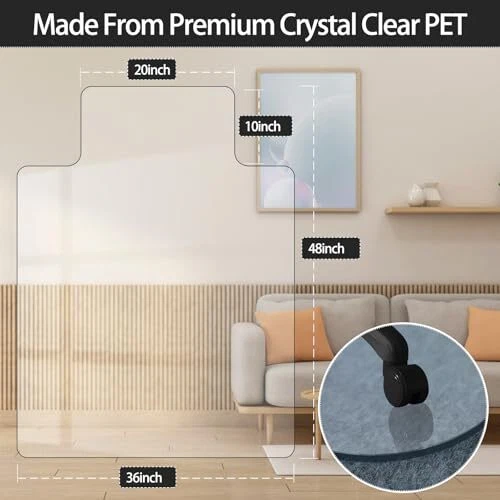 Return Policy Fast Delivery Trusted seller Office Chair Mat for Carpet Heavy Duty Hard Clear Chair Mats Under Desk Protector Floor Mat 48" x 36" Plastic Rolling Computer Mats Product Description 【Flat Shipping Effortless Laying】 office chair mat for carpet is shipped in flat packaging, When chair mat for carpet high pile arrives at your doorstep, carpet protector mat for office chair remains in pristine condition, free from bends or creases, and effortlessly unfolds for immediate use. 【MULTIPLE USE】Our office chair floor protector is not only suitable for carpet, but also for hardwood floor. It is very suitable as a desk mat for office carpet and a chair mat for carpeted floors to protect the floor from scratches, scuffs, and any type of damage.They can be used as a footrest or a cozy spot for your pets to curl up, as a temporary surface for standing desks, or as a protective layer for equipment such as printers or copiers. 【HIGH TRANSPARENCY】The full transparent office floor mat allows the beauty of your floor can be clearly seen. Smooth surface, easy to clean food residue, crayon marks. You can use floor mat for office chair in the office, dining table, children's graffiti, and other scenes, keep your floor clean and smooth. 【HIGH-QUALITY MATERIAL SAFE AND ODORLESS】Our desk chair mat for carpet is made of high-quality materials that are safe for your home or workplace. This desk floor mat makes it ideal for anyone looking for an environmentally friendly way to enhance their office space while maintaining a healthy working environment. 【EASY CARE AND CLEANING】This rolling chair mat for carpet floor is easy of care and cleaning. The plastic mat for under office chair smooth surface makes it easy to wipe off any spills or stains.To maintain the appearance of the plastic floor mat for office chair over carpet, simply wipe it down with a damp cloth or use a mild cleaning solution to remove any stains or marks. 【CHAIR MAT FOR CARPET】This clear mat for office chair is perfect for office or gaming chairs, This gaming chair floor mat is perfect for under chair floor protector, allowing you to enjoy the gaming experience without worrying about the floor being scratched or damaged. Shipping Returns Payment Shipping Shipping is FREE to all addresses other than APO/PO boxes in the lower 48 states. All our stock ships from US-based warehouses. Shipped via USPS or UPS (depending on location and package weight) Unless stated otherwise, all orders will ship within 24-72 hours of your payment being processed. Check our feedback to see the great reviews of FAST shipping we offer. Returns Seller does not accept returns Payment We currently accept payment via eBay managed payments only. Once payment is cleared, we will dispatch your shipment within 1-3 business days. Please refer to the "Shipping" tab for more information regarding shipping speed to your destination.