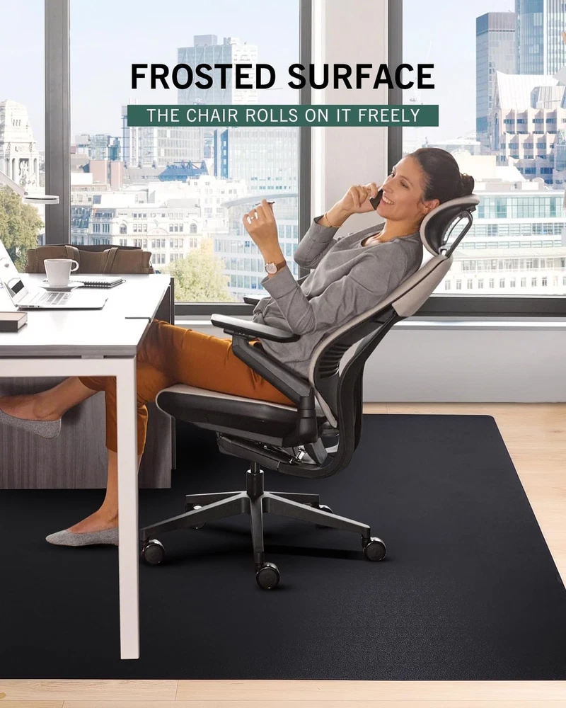 Office Chair Mat for Hard Floors, 48"x60" Anti-Slip Waterproof Floor Protector Desk Chair Mat for Rolling Chairs, Heavy Duty Non-Toxic Computer Chair Mat, Easy Glide Floor Mat for Work, Gaming Product Details Size: 48"x60" (for hard floors) Color: Black Brand: FURKIT MPN: Black-A01 UPC: Does not apply EAN: Does not apply Material: Polyvinyl Chloride (PVC) Brand: FURKIT Size: 48"x60" (for hard floors) Color: Black Style: Modern Shape: Rectangular Product Dimensions: 48"L x 60"W x 0.06"Th Surface Recommendation: Hard Floor Corner Style: Rounded Manufacturer: FURKIT Material: Polyvinyl Chloride (PVC) Brand: FURKIT Size: 48"x60" (for hard floors) Color: Black Style: Modern Shape: Rectangular Product Dimensions: 48"L x 60"W x 0.06"Th Surface Recommendation: Hard Floor Corner Style: Rounded Manufacturer: FURKIT Number of Items: 1 Item Weight: 7.3 pounds Country of Origin: China Item model number: Black-A01 Date First Available: September 11, 2023 Easy to Glide & Reduce Leg Fatigue: The frosted side of this office chair mat is up, which makes it much easier to glide your chair effortlessly in any direction. It is also an ergonomic chair mat that reduces the danger of lower body fatigue and repetitive stress injuries. Protect Hard Floors & Multifunction: The chair mat for gaming protects the hard floor from scratch. It can prolong the use of your hardwood floor, saving the cost of having to repair damage. The large desk chair mat has a wide range of uses, it is not only an office chair mat but also can be used as a pet litter mat and a play mat for the floor. No Cracks & Easy to Flatten: The computer chair mat is rolled up along a hard reel rather than folded in half, so there are no creases. The hard reel also protects the mat from bumps or dents on the edges caused by external forces. The hardness of the mat is tested several times, and it is easy to flatten in a short time, minimizing tripping hazards. Heavy-duty & Durable: The hard floor protector for the desk chair is 0.06 inch thick and made of premium PVC material, making it incredibly durable. It is built to last under even the most demanding conditions and protect your hardwood floor from scratches and marks caused by repetitive chair movements. Safe Material: Made from waterproof PVC material with SGS Certification, it is BPA and phthalates-free. The office chair mat for the hard floors is ideal for those who with pets and kids.