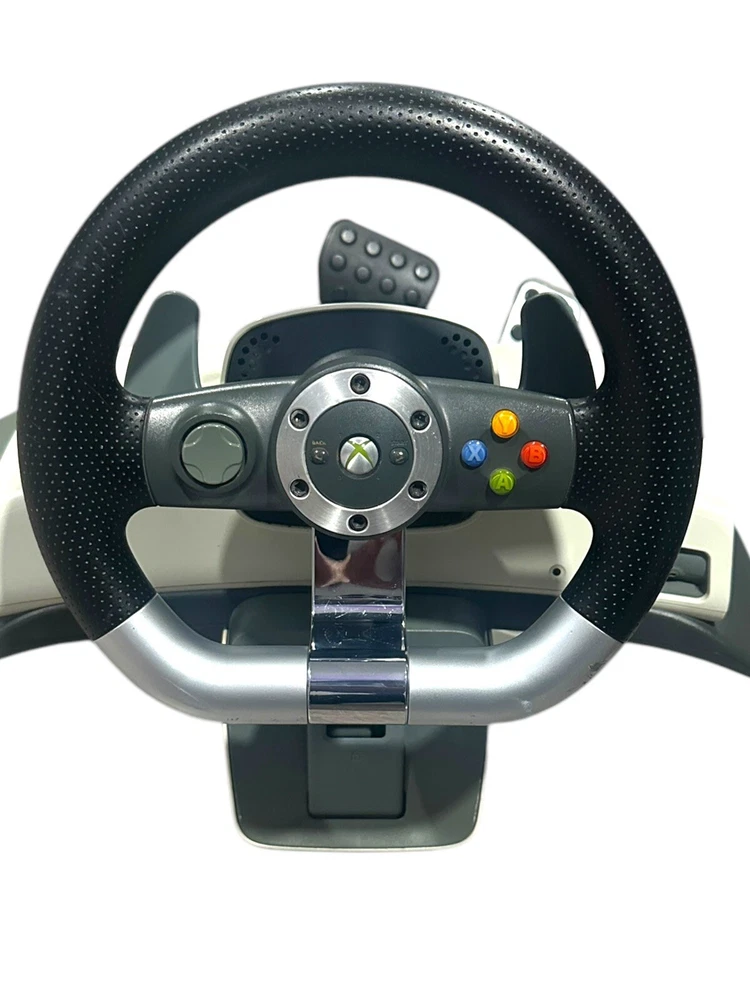 STEERING WHEEL HAS SOME SCTACHES AND MARKS ON TOP NOT TOO BIG AND PEDALS ARE IN GOOD CONDITION ONLY THING IS THE OUTER PART IS YELLOWING ! BUT NOTHING IS BROKEN AND ITS COMPLETE