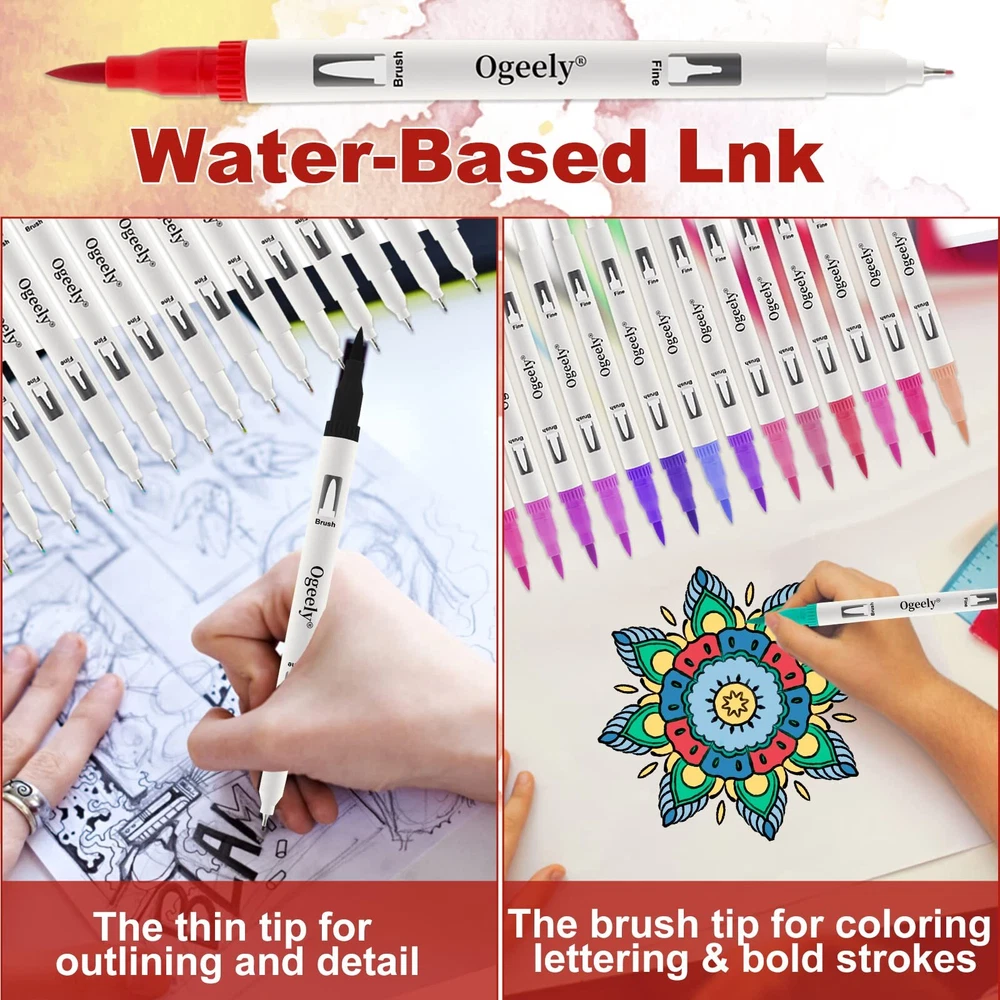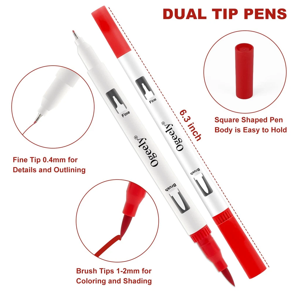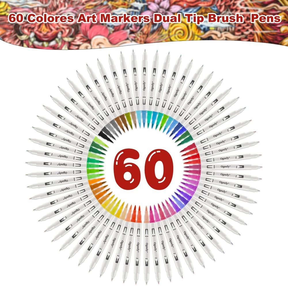 As an innovative office supply company, Ogeely is committed to providing you with the tools necessary to support your creating and art career. WHY CHOOSE Ogeely COLOR ALCOHOL PERMENANT MARKER SET? √ Versatile Fine & Chisel Twin Tips The fine tip is of ideal size if you want to add finer details to your drawing while the chisel tip works great for quickly filling in large areas as it covers larger area. √ Seamless Color Blending Smudging or uneven coloring are not an option. Professional-grade permanent marker ink enables beginners to achieve excellent coloring effects, even with just a few strokes of the marker tip. √ Durable Alcohol-Based Ink If you're looking for an alcohol-based ink that'll dry quickly so you can layer colors and blend them seamlessly, this is it. For decades to come, your artwork will look as good as the day it was created. To color with this set is a joy, as each of the vibrant hues is a sight to behold. A sturdy carrying case is included. Ad 【Classic & Premium Marker Pens】The water-based coloring markers are designed for a comfortable and smooth drawing, coloring experience. You can pour every inch of your inspiration into this dual tip marker, the double-tip design allows Ogeely markers for adult coloring can be more practical during your daily drawing. The 0.4mm fine tip is perfect to be used for outlining or adding detail, while the 1-2mm tip can be used for large areas of coloring, making coloring more efficient. 【High-Quality Ink】The high-quality water-based ink can bring you a smooth coloring experience, smooth without any blocking, makes Ogeely coloring book markers more suitable for expressing your creativity. Not only for professional painters, but also for beginners who just start drawing. The water-based ink of markers for kids is easy to flow, also safe and non-toxic, allowing small children to use this colored markers safely. 【Various Colors】Through one choice you can get 60 colors, this exquisite and deluxe markers for kids ages 8-12 set comes with 60 vibrant and bright colors, including various types of primary colors as well as complementary colors, giving your drawings multiple color layers so you can perfectly create the world in your mind. 【Wide Application】Ogeely makers for coloring can be applied for many types of surfaces, you can use this marker for coloring to draw on coloring books for adults and children, drawing books, journals, note pads, cards, calendars, etc., with bright color and unique texture, it is a great choice for choice for children, beginners, professional painters, teachers, students etc. 【Great Choice】Ogeely drawing markers set with 60 journaling supplies is perfect to be chosen as gift on Children's Day, birthday, Thanksgiving Day, Christmas Day, new year for friends, children. When you have any question about this double-tip coloring markers when coloring just feel free to contact us, we aim to provide high-quality art supplies for every drawing enthusiast.