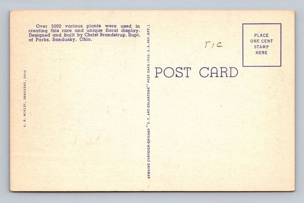 Ohio OH Sandusky Lighthouse Floral Emblem In Washington Park Vintage Postcard