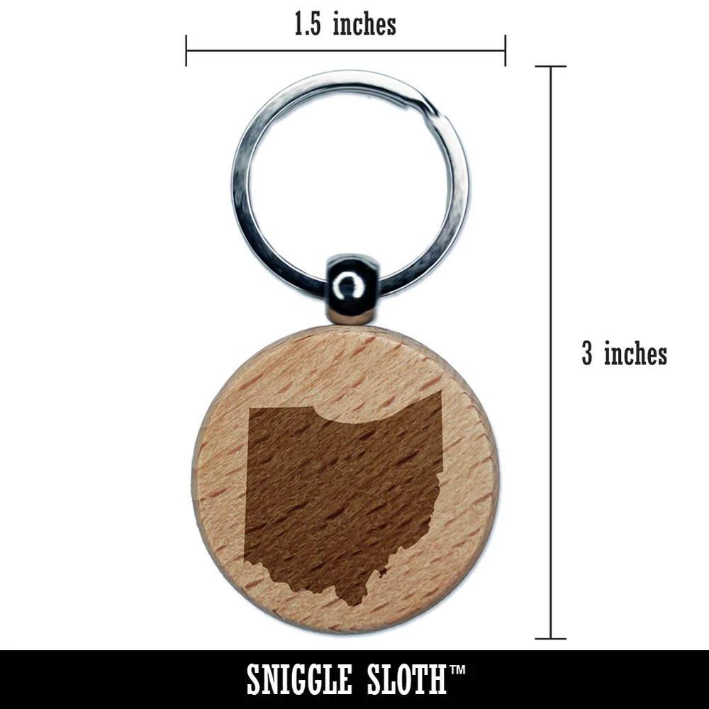 Ohio State Silhouette Engraved Wood Round Keychain Tag Charm