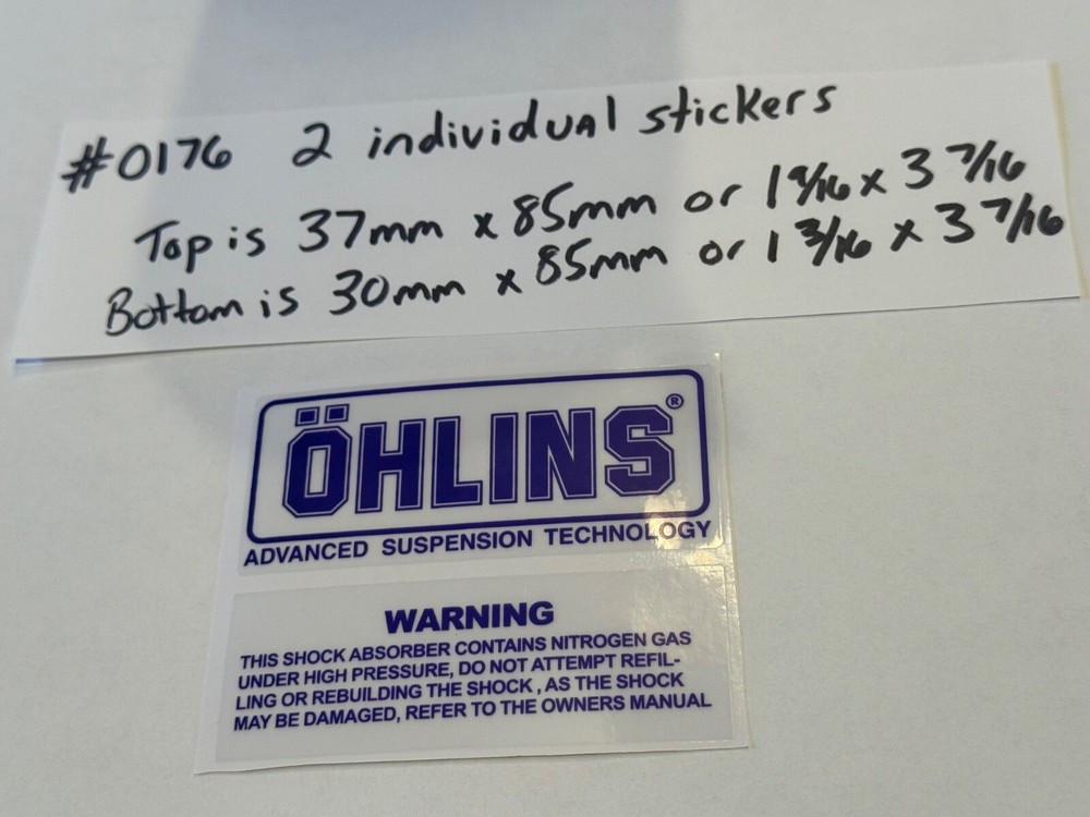 Thanks for shopping with me, please check out my other items. This is a 2 individual sticker set that you can put on your rear shock or wherever you like, They are blue with a clear surrounding background. The dimensions are listed in the pictures. Put them on your Ohlins shock or use them on your stock shock to look cool or put it anywhere you like. Located in Houston Texas Thanks for shopping with me, and have a great day!