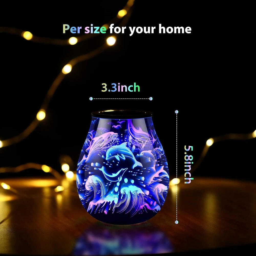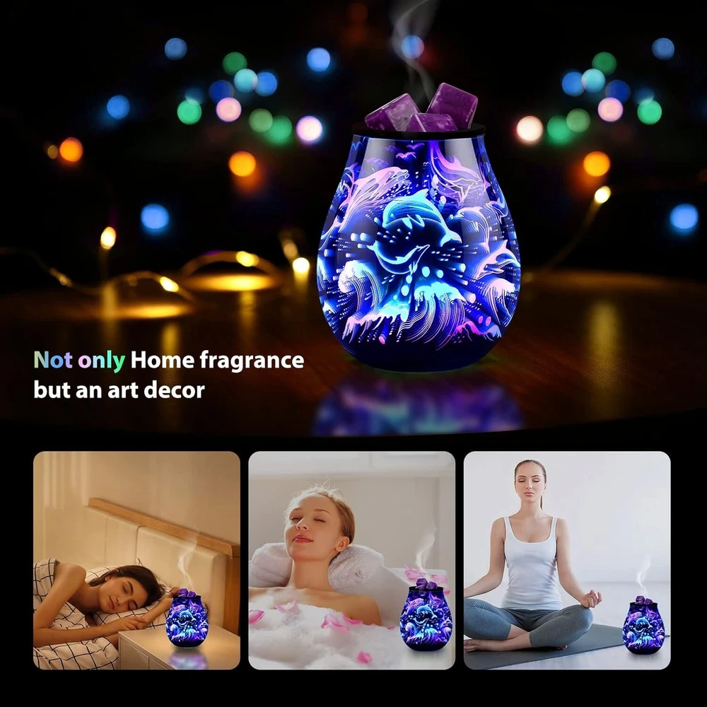 Oil 3D Glass Electric Wax Warmer for Scented Wax with 7 fragrance- Free shipping About this item Dolphin Design:Inrorans electric wax melt warmer is made of cute Dolphin design,3D glass,7 colors Led light,PTC heating,comes with a silicone tray.This beautiful oil lamp is a great decoration,matches in any room like home office Spa and more. 7 Colors Changing Night Light:Inrorans electric wax burner is built in 7 colorful changing Led light,will create a romantic ambiance with all colors changing when tart warmer is on;Also can choose and set as a single color for the wax melt warmer. Air Freshener: Inrorans electric oil burner can act as scentsy wax warmer,Place a cube of wax/essential oils on dish of candle warmer ,spreads perfume into room,The aroma fragrance lamp eliminates the worst or unpleasant smells;Inrorans wax burner for scented wax creates a comfortable and welcoming atmosphere,make you,guests feel relaxed with natural aroma. Quick Heating and Easy To Clean:Inrorans scented wax warmer takes safe heating PTC Tech,place waxed/essential oils in the tray,the wax melter for scented wax can warm and melt auto faster with stable temperature,no flame,soot or any pollution.Compare with traditional halogen light bulb,no need replace bulb,slow heating trouble.This glass wax melt warmer comes with a silicone tray, Easy to clean and change other fragrance waxes. Quality Warranty: Inrorans wax melt warmer electric provides you with WARRANTY with 45 days money back and 12 months worry-free guarantee, If you aren't satisfied with our fragrance wax warmer or have any doubt/trouble, please feel free to contact us.We will resolve your issue within 24 hours.Bring it back right now without any risk. Product Description