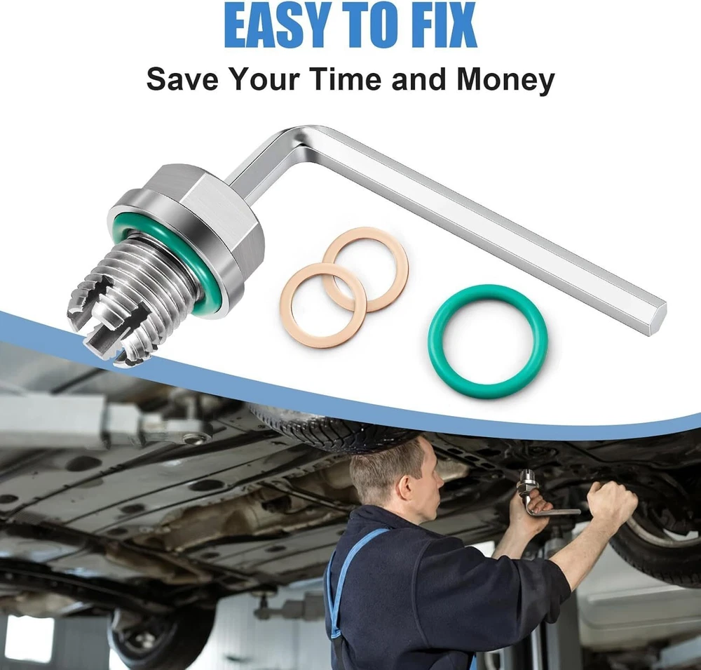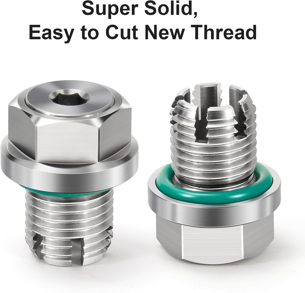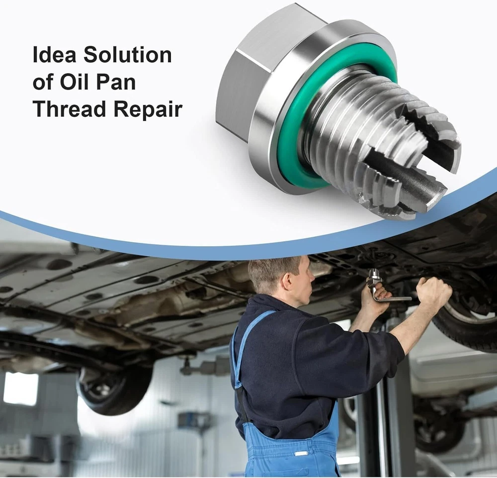 Oil Drain Plug Self-tapping Piggyback Stainless Steel Repair Kit M16.1-1.5x15mm M18.1-1.5x15mm Self-Tapping Piggyback Oil Drain Plug Repair Kit | 304 Stainless Steel 6-Thread Cut Design | Leak-Proof Seals | Oil Pan Thread Repair | No Full Pan Replacement | 90-Day Warranty High-hardness repair kit for stripped oil pan threads, cost-effective & easy installation, universal fit, with complete tools/seals to stop oil leaks 1. Core Specifications Parameter Details Condition 100% Brand New Thread Spec (Correct) M18.1-1.5 x 15mm (oversize self-tapping for thread repair) Material Main/Piggyback Plug: 304 Stainless Steel; Seals: Pure Copper + Fluorine O-Ring Color Silver Key Design 6 Sharp & Solid Thread Cut; Piggyback dual-plug structure Installation Torque Approx 14ft-lbf (tighten with T-socket wrench) Warranty 90-Day Warranty + 30-Day Free Return Fitment Universal (for repairing stripped/worn oil pan drain plug holes) Tolerance 1-3mm deviation due to manual measurement 2. Complete Package Contents 1×304 Stainless Steel Main Self-Tapping Oversize Drain Plug 1×Piggyback Oil Drain Plug 1×L-Shaped Hex Key Allen Wrench (for small piggyback plug) 2×Fluorine O-Rings (main plug sealing) 2×Pure Copper Gaskets (piggyback plug sealing) 3. Key Features & Advantages 🔹 Premium Material & Leak-Proof Seal Main plug made of sturdy 304 stainless steel for high hardness, corrosion resistance and long service life; high-quality pure copper gaskets and fluorine O-rings ensure tight sealing post-installation, no oil leakage. Every unit is checked by professionals for accuracy and sealing performance, quality guaranteed. 🔹 6-Thread Cut Design, Reliable Thread Repair Sharp, solid 6-thread cut on 304 stainless steel plug directly re-taps stripped oil pan holes, no tricky alignment needed. Creates a firm new thread fit to fix loose/damaged threads, avoids leakage risks from improper use of other repair tools, stable and durable. 🔹 Cost-Effective, Save Time & Money Eliminates the need to replace the expensive entire oil pan caused by thread slippage, cutting down repair costs, labor and time greatly. Matches the function of original oil drain plugs, offering a budget-friendly, efficient solution for thread damage issues. 🔹 Simple Installation, No Professional Skills Required Easy DIY installation with clear steps, no pro repair experience needed. Suitable for DIY enthusiasts and auto repair shops alike, solves oil pan thread problems quickly without complex tools. 🔹 100% Pre-Shipment Inspection, Quality Assured All products go through 100% inspection before shipment to avoid quality defects. Check product pictures and specs to match your vehicle before ordering; contact us anytime for usage issues, we’ll assist you promptly. 4. Standard Installation Steps Prep: Clean the oil pan thoroughly, remove excess oil and impurities from the damaged hole area and residual threads. Tap Threads: Screw the piggyback plug into the damaged hole, turn forward a few turns then backward to form tight new threads. Clean Debris: Remove the plug once it bottoms out, fully clean all iron chips around the tapped hole (prevents engine wear from debris entering oil system). Tighten Main Plug: Use a T-socket wrench to torque the main plug to 14ft-lbf (tighten firmly but do not over-tighten to avoid thread damage). Finish: Screw in the small piggyback oil drain plug to complete installation. ⚠️ Critical Note: Keep the large piggyback plug fixed when removing the small plug for oil draining. 5. Important Notes Thread Confirmation: This kit is M18.1-1.5x15mm (correct spec, typo in original specs fixed) — double-check your damaged oil pan thread size matches before ordering. Shipping Rules: Shipped within 24hrs after cleared payment (exclude weekends/holidays); NO shipping to Puerto Rico — confirm your address is valid first. Size & Color Note: 1-3mm deviation from manual measurement is normal; product color may differ slightly from pictures due to display/light, no impact on use. After-Sales Support: Contact us first for fitment, quality or shipping issues, we’ll resolve them ASAP. Feedback Reminder: Reach out before leaving neutral/negative feedback, we’ll try our best to provide a satisfactory solution.