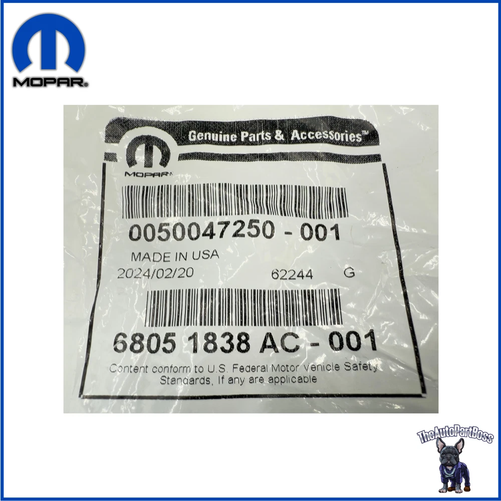 Message Us BRAND NEW MOPAR GENUINE ORDERS ARE SHIPPED SAME DAY IF PLACED BEFORE 5 PM EST If Express or Expedited shipping is not available, please contact us. GENUINE MOPAR PART # 68051838AC Oil Filler Tube Key Features: Quality and Fit OEM Standards 100% Genuine Part Ready to Order? Don't miss out on this high-quality, genuine part. Order now and enjoy fast shipping! If you are not sure this will fit your vehicle, please message us your VIN before ordering to verify compatibility. FOR: Year Make Model Body & Trim Engine & Transmission 2023 Chrysler 300 S, Touring, Touring L 3.6L V6 - Flex, 3.6L V6 - Gas 2023 Dodge Challenger GT, SXT 3.6L V6 - Gas 2023 Dodge Charger GT, Pursuit, SXT 3.6L V6 - Flex, 3.6L V6 - Gas 2022 Chrysler 300 S, Touring, Touring L 3.6L V6 - Flex, 3.6L V6 - Gas 2022 Dodge Challenger GT, SXT 3.6L V6 - Gas 2022 Dodge Charger GT, SXT 3.6L V6 - Flex, 3.6L V6 - Gas 2022 Jeep Cherokee Latitude Lux, Limited, Trailhawk 3.2L V6 - Gas 2021 Chrysler 300 S, Touring, Touring L 3.6L V6 - Flex, 3.6L V6 - Gas 2021 Dodge Challenger GT, SXT 3.6L V6 - Gas 2021 Dodge Charger GT, SXT 3.6L V6 - Flex, 3.6L V6 - Gas 2021 Jeep Cherokee 80th Anniversary, Latitude, Latitude Lux, Limited, Trailhawk 3.2L V6 - Gas 2020 Chrysler 300 Limited, S, Touring, Touring L 3.6L V6 - Flex, 3.6L V6 - Gas 2020 Dodge Challenger GT, SXT 3.6L V6 - Gas 2020 Dodge Charger GT, Pursuit, SXT 3.6L V6 - Flex, 3.6L V6 - Gas 2020 Jeep Cherokee Altitude, High Altitude, Latitude, Latitude Plus, Limited, Overland, Trailhawk, Trailhawk Elite, Upland 3.2L V6 - Gas 2019 Chrysler 300 Limited, S, Touring, Touring L 3.6L V6 - Flex, 3.6L V6 - Gas 2019 Dodge Challenger GT, SXT 3.6L V6 - Gas 2019 Dodge Charger GT, Pursuit, SXT 3.6L V6 - Flex, 3.6L V6 - Gas 2019 Jeep Cherokee Altitude, High Altitude, Latitude, Latitude Plus, Limited, Overland, Trailhawk, Trailhawk Elite 3.2L V6 - Gas 2018 Chrysler 300 Limited, S, Touring, Touring L 3.6L V6 - Flex, 3.6L V6 - Gas 2018 Dodge Challenger GT, SXT, SXT Plus 3.6L V6 - Gas 2018 Dodge Charger GT, GT Plus, Pursuit, SXT, SXT Plus, SXT Plus Leather 3.6L V6 - Flex, 3.6L V6 - Gas 2018 Jeep Cherokee Latitude, Latitude Plus, Limited, Overland, Trailhawk 3.2L V6 - Gas 2018 Jeep Wrangler JK Rubicon, Sahara, Sport, Sport S, Unlimited Rubicon, Unlimited Sahara, Unlimited Sport, Unlimited Sport S 3.6L V6 - Gas 2017 Chrysler 200 C, Limited, S 3.6L V6 - Flex 2017 Chrysler 300 C, C Platinum, Limited, S 3.6L V6 - Flex, 3.6L V6 - Gas 2017 Dodge Challenger GT, SXT, SXT Plus 3.6L V6 - Gas 2017 Dodge Charger Pursuit, SE, SXT 3.6L V6 - Flex 2017 Jeep Cherokee Latitude, Limited, Overland, Sport, Trailhawk 3.2L V6 - Gas 2017 Jeep Wrangler Rubicon, Sahara, Sport, Unlimited Rubicon, Unlimited Sahara, Unlimited Sport 3.6L V6 - Gas 2016 Chrysler 200 C, Limited, S 3.6L V6 - Flex 2016 Chrysler 300 C, C Platinum, Limited, S 3.6L V6 - Flex, 3.6L V6 - Gas 2016 Dodge Challenger SXT, SXT Plus 3.6L V6 - Gas 2016 Dodge Charger Pursuit, SE, SXT 3.6L V6 - Flex 2016 Jeep Cherokee 75th Anniversary, Latitude, Limited, Overland, Sport, Trailhawk 3.2L V6 - Gas 2016 Jeep Wrangler 75th Anniversary, Rubicon, Sahara, Sport, Sport S, Unlimited 75th Anniversary, Unlimited Rubicon, Unlimited Sahara, Unlimited Sport, Unlimited Sport S 3.6L V6 - Gas 2015 Chrysler 200 C, Limited, S 3.6L V6 - Flex 2015 Chrysler 300 C, C Platinum, Limited, S 3.6L V6 - Flex, 3.6L V6 - Gas 2015 Dodge Challenger SXT, SXT Plus 3.6L V6 - Gas 2015 Dodge Charger Pursuit, SE, SXT 3.6L V6 - Flex 2015 Jeep Cherokee Latitude, Limited, Trailhawk 3.2L V6 - Gas 2015 Jeep Wrangler Rubicon, Sahara, Sport, Unlimited Rubicon, Unlimited Sahara, Unlimited Sport 3.6L V6 - Gas 2014 Chrysler 200 LX, Limited, S, Touring 3.6L V6 - Flex 2014 Chrysler 300 Base, C, C Luxury, S 3.6L V6 - Flex, 3.6L V6 - Gas 2014 Dodge Avenger R/T, SE, SXT 3.6L V6 - Flex 2014 Dodge Challenger Rallye Redline, SXT 3.6L V6 - Gas 2014 Dodge Charger Pursuit, SE, SXT 3.6L V6 - Flex, 3.6L V6 - Gas 2014 Jeep Cherokee Latitude, Limited, Sport, Trailhawk 3.2L V6 - Gas 2014 Jeep Wrangler Rubicon, Sahara, Sport, Unlimited Rubicon, Unlimited Sahara, Unlimited Sport 3.6L V6 - Gas 2013 Chrysler 200 LX, Limited, S, Touring 3.6L V6 - Flex 2013 Chrysler 300 Base, C, C Luxury, S 3.6L V6 - Flex, 3.6L V6 - Gas 2013 Dodge Avenger R/T, SE, SXT 3.6L V6 - Flex 2013 Dodge Challenger SXT 3.6L V6 - Gas 2013 Dodge Charger Pursuit, SE, SXT 3.6L V6 - Flex, 3.6L V6 - Gas 2013 Jeep Wrangler Rubicon, Sahara, Sport, Unlimited Rubicon, Unlimited Sahara, Unlimited Sport 3.6L V6 - Gas 2012 Chrysler 200 LX, Limited, S, Touring 3.6L V6 - Flex 2012 Chrysler 300 Base, Limited, S 3.6L V6 - Flex, 3.6L V6 - Gas 2012 Dodge Avenger R/T, SE, SXT Plus 3.6L V6 - Flex 2012 Dodge Challenger SXT, SXT Plus 3.6L V6 - Gas 2012 Dodge Charger Pursuit, SE, SXT, SXT Plus 3.6L V6 - Flex, 3.6L V6 - Gas 2012 Jeep Wrangler Rubicon, Sahara, Sport, Unlimited Rubicon, Unlimited Sahara, Unlimited Sport 3.6L V6 - Gas 2011 Chrysler 200 LX, Limited, S, Touring 3.6L V6 - Flex 2011 Chrysler 300 Base, Limited 3.6L V6 - Flex, 3.6L V6 - Gas 2011 Dodge Avenger Express, Heat, Lux, Mainstreet 3.6L V6 - Flex 2011 Dodge Challenger SE 3.6L V6 - Flex 2011 Dodge Charger Pursuit, SE 3.6L V6 - Flex, 3.6L V6 - Gas