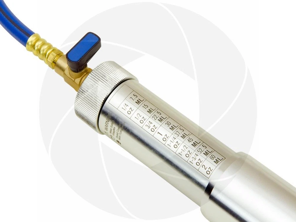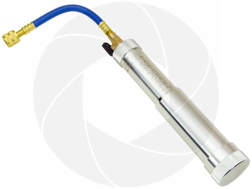 Air conditioning oil or dye injector is used for repair or diagnostics of the most types of air conditioning or refrigerant systems. With help of this tool you will be able to push oil or dye in to you’re A/C system without need of discharging refrigerant. This specific model features large capacity fluid reservoir, up to 2oz or 60ml and a ball valve that isolates the coupler from the injector. A must have tool in order to perform system recharge and diagnostics. This injector tool comes with a standard female 1/4 SAE threaded adapter that is made to fit most service valve quick connector couplers with 1/4 SAE male thread, printed chart gauge on the side of the cylinder. Features: Injects oil without need of discharging refrigerant Clear printed chart in Oz and ml measurements Large capacity injector, up to 2oz or 60ml Ball valve to prevent refrigerant leak into injector while injector is open but connected Includes a hose and standard 1/4 SAE female thread adapter for service valve couplers Can be used for most types of refrigerant systems, automotive and household air conditioners One way backflow prevention valve inside the injector cap to prevent reverse pressure flow Specifications: Model: YS-ACT-301 Product type: A/C dye injector Made of CNC aluminum Comes with rubber hose Quarter turn ball valve Backflow prevention valve Maximum working pressure up to 600PSI 1/4 inch SAE female connector Capacity measurements: oz and ml Maximum capacity: 2oz or 60ml Cylinder height: 6-5/8in or 17cm Cylinder diameter: 2in or 5cm Weight: 20oz or 571g Please note: This oil/dye injector can be used with any type of refrigerant system, make sure your service valve couplers are able to accept 1/4 SAE female thread, or you can purchase R134a or R1234yf from us separately Always wear protective equipment when working with refrigerant or high pressurized gas systems Package includes: Oil dye injector with ball valve and 1/4 SAE female connector Craft box packaging Get images that make Supersized seem small. THE simple solution for eBay sellers. Track Page Views With Auctiva's FREE Counter