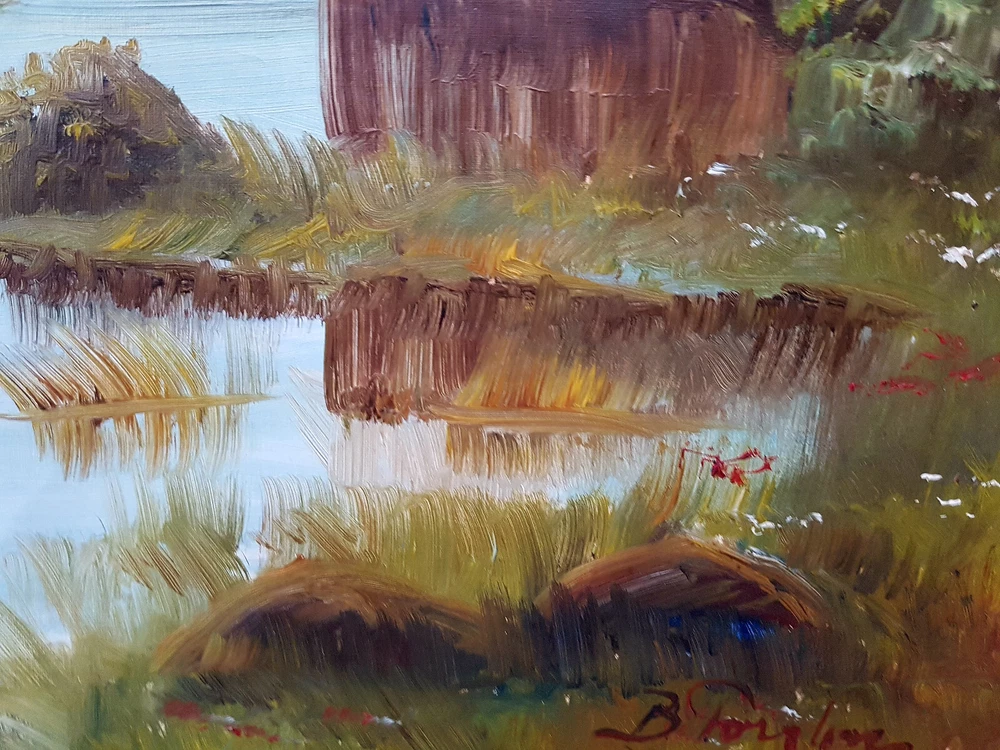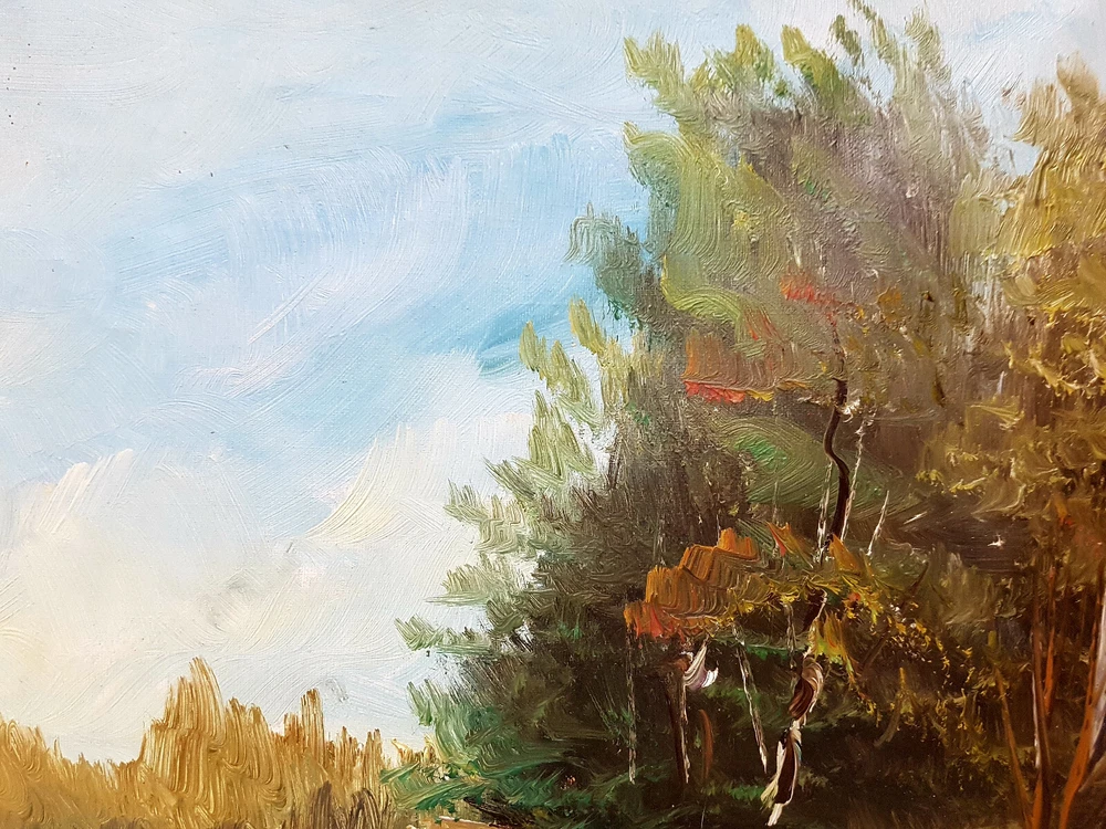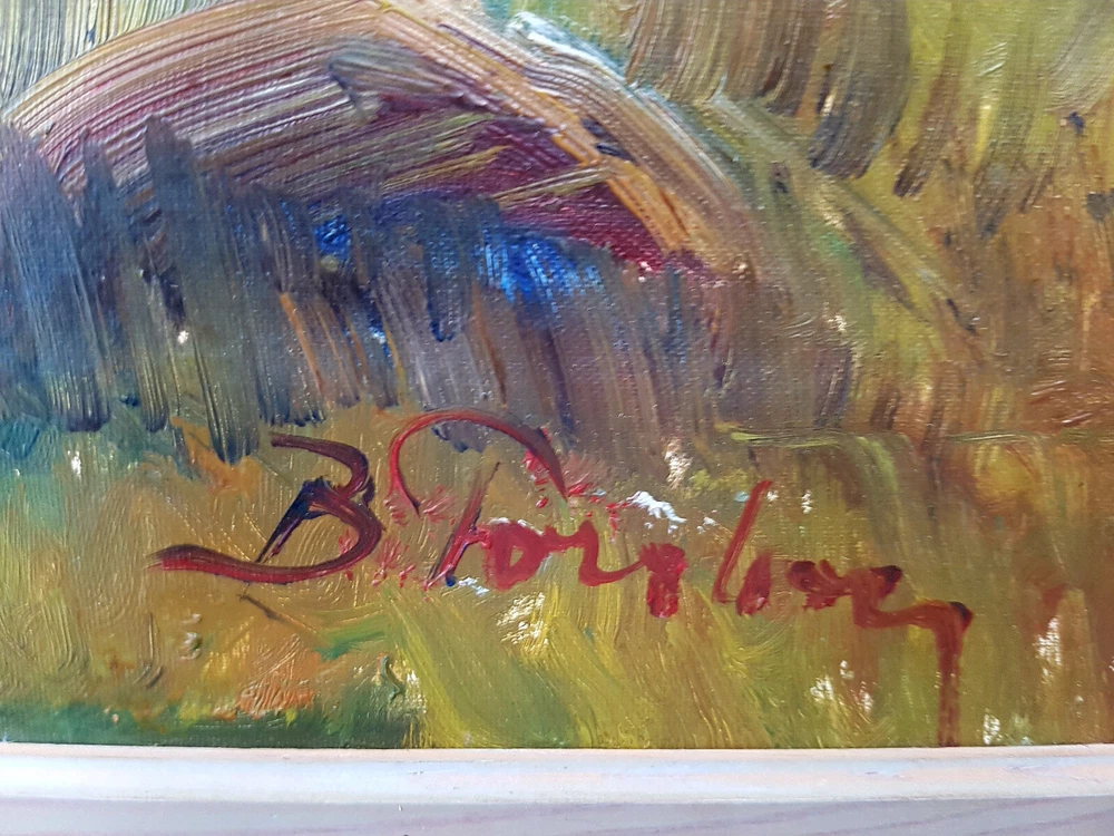 Handgemaltes Ölgemälde. Aus dem 1955 Jahr. Technik: ÖL auf Leinwand, signiert und datiert. Die Größe mit Rahmung beträgt: 57 cm x 48,5 cm. Ohne Rahmung: 46,5 cm x 38 cm. Gebrauchter Zustand, aufgrund des Alters. Schauen Sie sich bitte die Fotos genau an. Diese gehören zur Artikelbeschreibung und können nicht als Reklamationsgrund angegeben werden. Der Bilderrahmen ist nicht Gegenstand des Kaufs, wird jedoch gratis mitgeliefert. Beschädigungen am Rahmen werden nicht als Reklamation anerkannt. Überprüfen Sie bitte unsere Versandbedingungen genau. Mit dem Kauf eines Gemäldes erklären Sie sich damit einverstanden. Farbabweichungen sind möglich, da jede Kamera und ein Bildschirm die Farben unterschiedlich vermittelt. Sollten Sie Fragen haben bzw. weitere Angaben benötigen, insofern ich sie hebe. Stellen Sie, sie bitte vor dem Kauf. Bitte beachten Sie auch unsere anderen Angebote, es folgen jede Menge Bilder. Wir wünschen Ihnen viel Spas beim Stöbern und Kaufen.