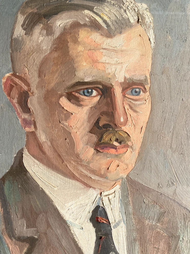 Oil on canvas. Age-related condition see photos. Dimensions: 70x50 cm DIFFERENTIAL TAXED!! Oil on canvas. Age-related condition see photos. Dimensions: 70x50 cm DIFFERENTIAL TAXED!! Recommended products Provided by Oil painting sign. C. Specht portrait of a man with glasses and tie View item Oil painting portrait 1945 portrait °unclearly signed °man with tie View item Oil painting Monogr. R.G. 1946 Portrait of a man soldier? Beggar? View item Oil Painting Portrait Man With Hat Tracht Signed Illegibly Frame Portrait View item Oil painting portrait young man signed illegible frame antique portrait oil View item Oil painting A. Zerlin around 1880 'The Full Jug' Portrait Man with Pipe Munich View item Portrait Oil Painting Fischer Old Man with Hat & Pipe Illegibly Signed View item Fritz Haack *1913 Oil Painting Portrait Gentleman Antique Man with Pipe View item