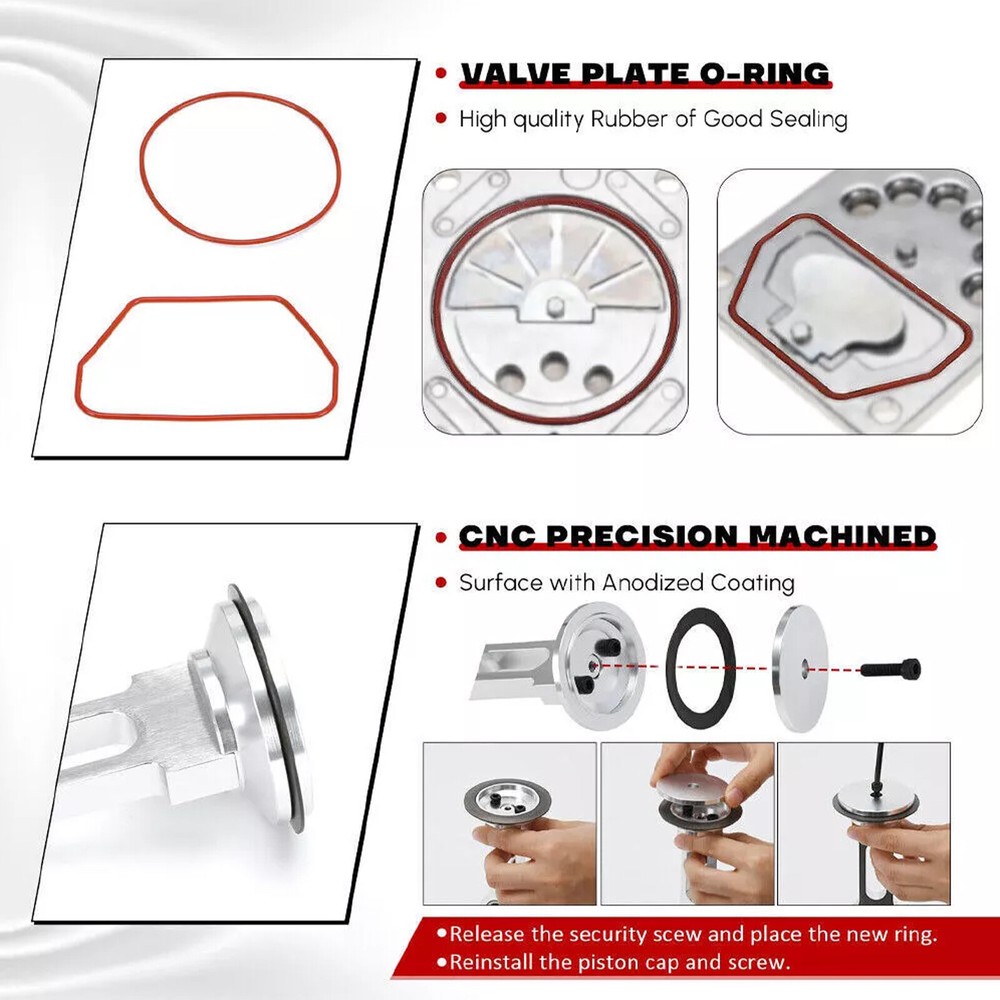 Turn Signal Wiper FL3Z-13K359-AC Dimmer Switch For 2015 2016 2017 2018 Ford F150 26.99 USD Free shipping NEW For VW 2.0T TSI`Intake/Manifold A3 TT GTI Jetta Passat CC Tiguan Beetle 89.99 USD Free shipping 2025 For Car New Universal/Cover Waterproof All Weather Fit SUV Length 190"-200" 33.99 USD Free shipping 60" LED Truck Strip Tailgate Light Bar Tail Running Flowing Turn Signal USA LED 22.99 USD Free shipping Car Side Window Trim Edge Moulding Rubber Sealing Strip Weatherstrip Universal4M 7.99 USD Free shipping For Ford F-150 Super Duty`Models/Tailgate Lock Actuator Control GC3Z9943170E US 39.99 USD Free shipping 12 Clips+12Pins For Toyota Fender Liner & Bumper Cover Retainer Kit 53879-58010 6.99 USD Free shipping Rear View Backup Camera Parking Camera For Toyota Tundra 2007-2013 86790-34030 26.99 USD Free shipping BL3Z-19G490-B Fit For 2012 2013 -14 Ford F-150 Rear View Backup Parking Camera 29.99 USD Free shipping Upstream or Downstream Oxygen Sensor for Mitsubishi Outlander Lancer 25024751 33.99 USD Free shipping Transmission Filer Metal Kit For`NISSAN/07-18 ALTIMA JUKE NV200 ROGUE US 19.99 USD Free shipping 7-141 Body and Cab Mount`Bushing/Kit For Chevy Silverado Sierra 2/4WD 1999-2014 79.99 USD Free shipping KK-4835 Fit For Oil Free/Compressor Pumps Piston Compressor Connecting Rod Kit Description Tips: Please Comfirm The Parts Number , And Confirm This Item Fits Your Car Before Purchasing. This replacement air compressor piston connecting rod assembly Kit KK-4835 is using the ACG-1 Rod Casting with the split journal and screw and include the bearing. Description: 1. Accessories: This air compressor piston kit kk4835 is designed specifically compatible for DeVilbis air compressor Products oil-free compression pumps and the latest styles of coated cylinder liners. 2. High Performance: After replacing the new parts, you can make your compressor work like a new compressor to the great extent. Will restore compression to like a new condition, extend the life of the compressor. Direct replacement for KK-4835 KK-5081 & A02743 both in quality and functions. 3. Excellent Material: Milled from ultra hard solid 6061 aluminum with a black coating. It has the ability to handle a large amount of pressure. 4. Durable: CNC machining precision manufacturing, sturdy and durable, impact resistant, corrosion-resistant and wear-resistant, with long-term reliable performance. 5. Package: The packaging includes this heavy-duty replacement compressor connecting rod kit, which includes 1 connecting rod, 1 piston ring, 1 cylinder liner, and 2 O-ring. Specification: - Condition: 100% Brand New - Type: Compressor Piston Kit Connecting Rod - Material: Aluminum alloy - Color: Silver - Part Number: KK-4835 - Fitment Type: Direct Replacement OE Part NO: KK-4835/ KK-5081/ A02743. Other Part Number The KK-4835 replaces the following part numbers: ACG1, Single Cylinder Compressor Only. 889124, 889125, 891125; CAC-118, CAC118,CAC-1118, CAC1118, CAC-249, CAC-249-1, AC-0788, AC0788, D25009,D25837; Package Included: 1 set Compressor Piston Kit Connecting Rod Kit Fits the following models: (Compatibility is just for reference, please confirm your OE number.) This air compressor piston and connecting rod replacement kit is Compatible for Craftsman / Porter Cable / Dewalt / Devildis, For Air Power Products oil free compressor pumps and the most current style coated cylinder sleeve. Fits for AC-0102, AC-0051, D-20954, Z-D24959, Z-D24960, MO-3024, Z-D26718, Z-D26717; Fits for 919.152811 919.727270 919.152932 919.165230 919.167330 919.165600 919.166600, Fits for 919.167320 919.152811 919.152813 919.152921 919.152931 919.155730 919.166330 919-165310, 919-165330. Installation: 1️⃣ Install the new compression Piston Ring on the top of the Connecting Rod. 2️⃣Insert the Connecting Rod and Cylinder Sleeve into the pump. 3️⃣ Install the new O-Ring Seal on the upper valve plate. 4️⃣ Install the new O-Ring Seal on the lower valve plate. 5️⃣Place the valve plate on the pump. 6️⃣Place the pump head over the valve plate and tighten. Note: --Please BE AWARE that the vehicle compatibility list on eBay may not be 100% accurate. Please Comfirm The Parts Number And Confirm This Item Fits Yours Before Purchasing. --Above listed items are a main reference, for detailed model, please use the year/make/model check finder and check the replace part numbers to confirm the compatibility before purchasing. --If you have any issues with our product, please contact us immediately and we will do our best to resolve your issue. 93571-D3000 LHD Door Master Power`Window/Switch For Hyundai Tucson 2016-2018 29.99 USD Free shipping For GM 6.6 6.6L Duramax`Diesel/Front& Rear Main Crankshaft Seal Driver Kit 01-16 69.99 USD Free shipping For Mercury MerCruiser Alpha Flo-Torq`2/II Propeller Hub Kit 835257K1 835257Q1 29.99 USD Free shipping TIG Welding Tungsten Sharpener Grinder`Multi-Angle/& 4 Guides Offsets Head Tool 29.99 USD Free shipping Trim Tilt Pin Wrench Set/MT0004`MT0006/for Yamaha Suzuki Johnson Outboard MT0009 35.99 USD Free shipping Dipstick Transmission for Ford 150`10R80/6R80 4R75E AODE-W 4R70E Locking Braided 69.99 USD Free shipping 125255 Hydro Transmission Brackets Kit`for/Hustler Zero Turn Mower Raptor SD SDX 89.99 USD Free shipping Front End Grille Bra Cover`Protector/Kit for Jeep Wrangler JL Gladiator JT Vinyl 89.99 USD Free shipping 10259A 10259B Engine Actuator Spring/Compressor/for Fiat Multi Air Engine &Turbo 99.99 USD Free shipping Water Pump For 2018-2023 Toyota`Sienna/Camry Venza Avalon RAV4 2.5L 16032-25010 139.99 USD Free shipping Liftgate Trunk Lock Actuator Motor`for/Ford Edge 15-20 Escape Expedition Lincoln 59.99 USD Free shipping Fuel Pump Assembly For 1997-03`Toyota/Avalon Camry Solara 2.2L 3.0L SP9157M 89.99 USD Free shipping