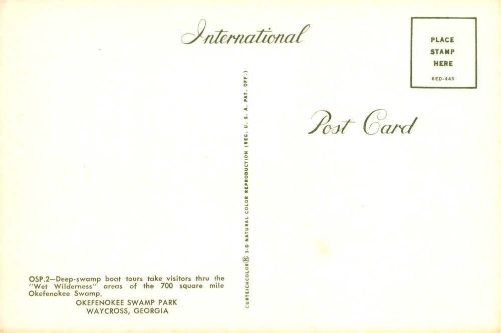Okefenokee Swamp Park, Waycross, Georgia Postcard