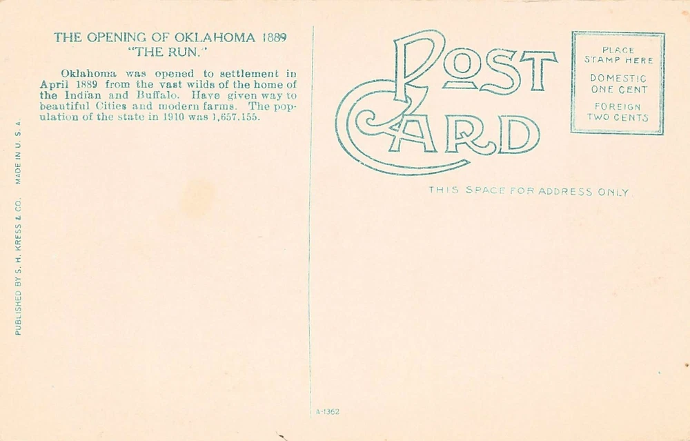 Oklahoma Land Run Rush 1889 Western Cowboy Seminole Territories Vtg Postcard C45