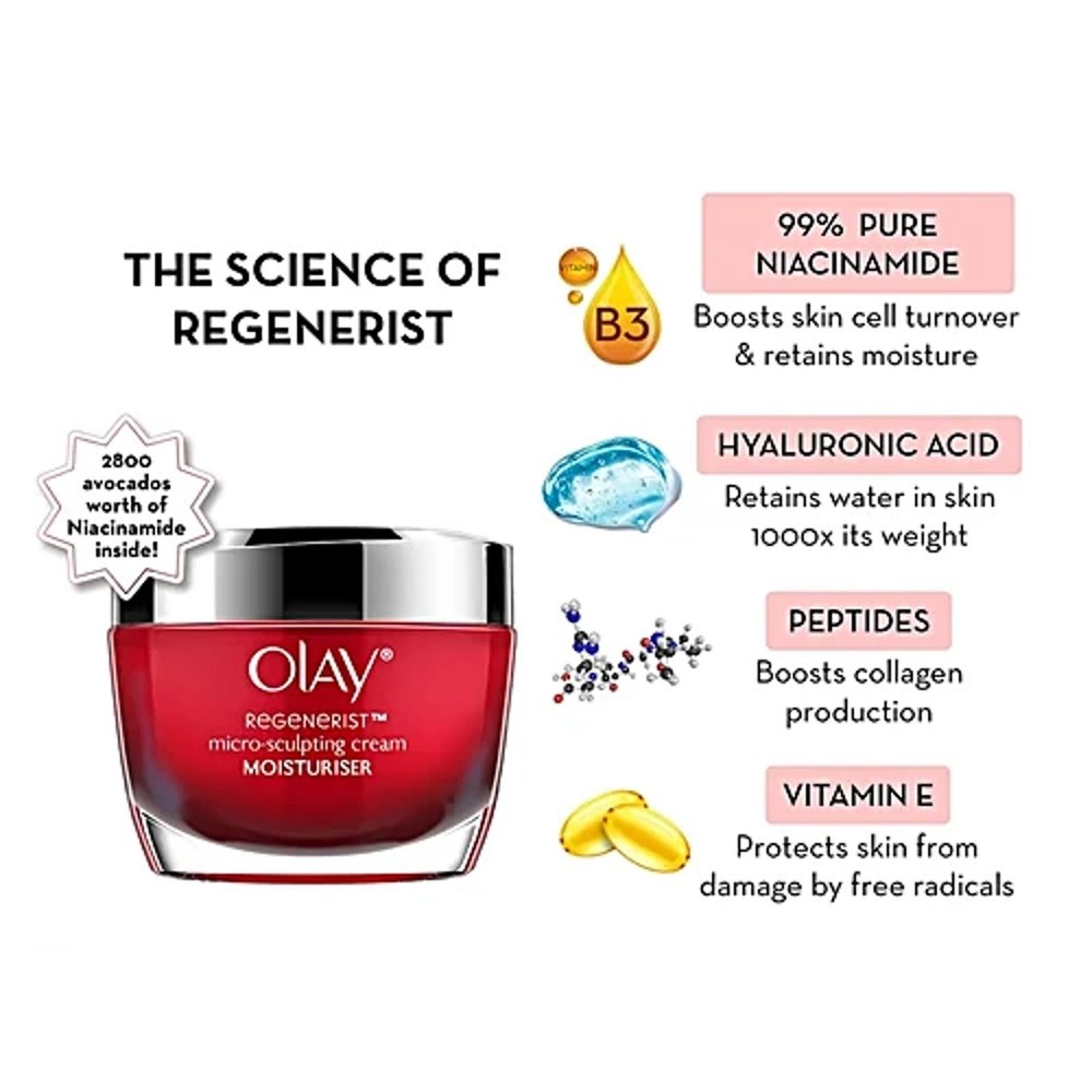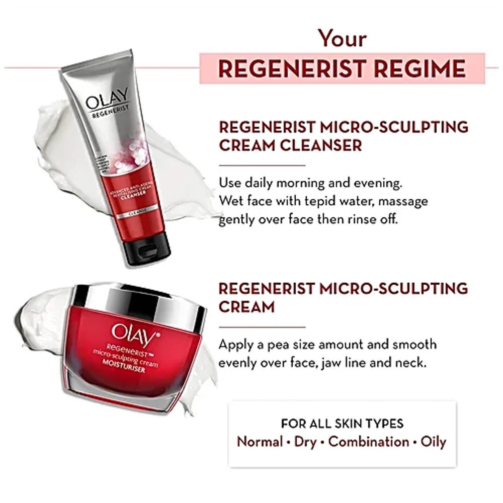 Discover how the OLAY Regenerist Microsculpting Cream and Cleanser Set nourishes, hydrates, and rejuvenates your skin in just days. This set features powerful ingredients for advanced anti-aging. The OLAY Regenerist Micro-Sculpting Cream stands out with its advanced Amino-Peptide Complex II. This fast-absorbing moisturizer targets signs of aging. With regular use, you may notice firmer skin and a much smoother texture. The formula contains 99% pure Niacinamide, also called Vitamin B3. Niacinamide boosts cell turnover and locks in essential moisture. Each use leaves your skin looking plumper and more radiant.