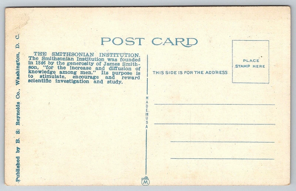 Old Antique Vintage Postcard Smithsonian Institution Statue Washington, D.C.
