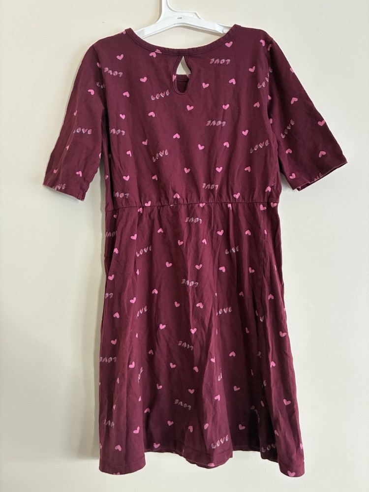 Old Navy Kid Girls Hearts 100% Cotton Fit & Flare Elbow Sleeve Dress Burgundy XL. Condition is pre-owned. Smoke free, pet free home. Shipped via USPS Ground Advantage. In very good condition. Free of rips or stains.